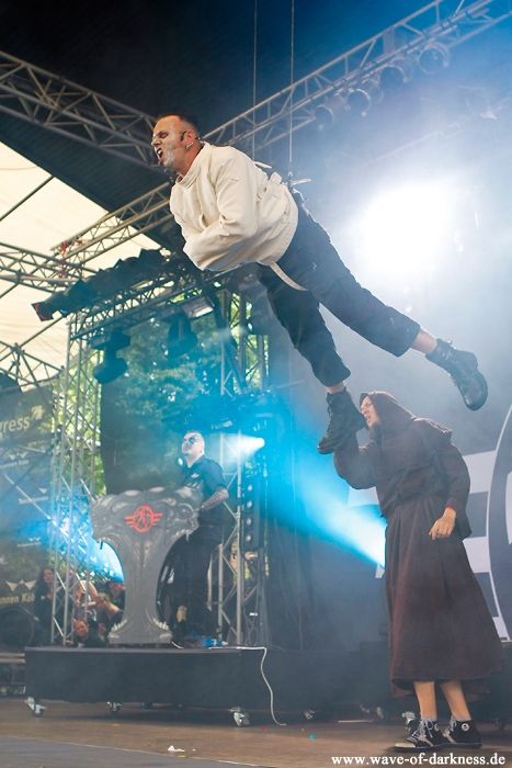 Passend zum Sonntag meldete sich Petrus vorzeitig aus dem Wochenendurlaub zurück und bescherte allen Amphi Fans eine sonnige zweite Festivalhälfte, unter anderem mit spektakulären Shows von Agonoize, Feindflug, Nitzer Ebb, Covenant und Subway To Sally, die dem Amphi Festival zum Abschluss ein Kleid aus Rosen schenkten!