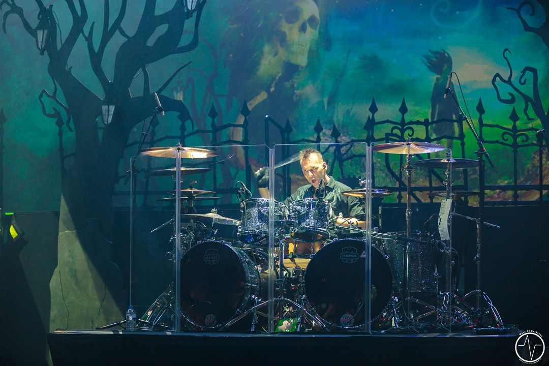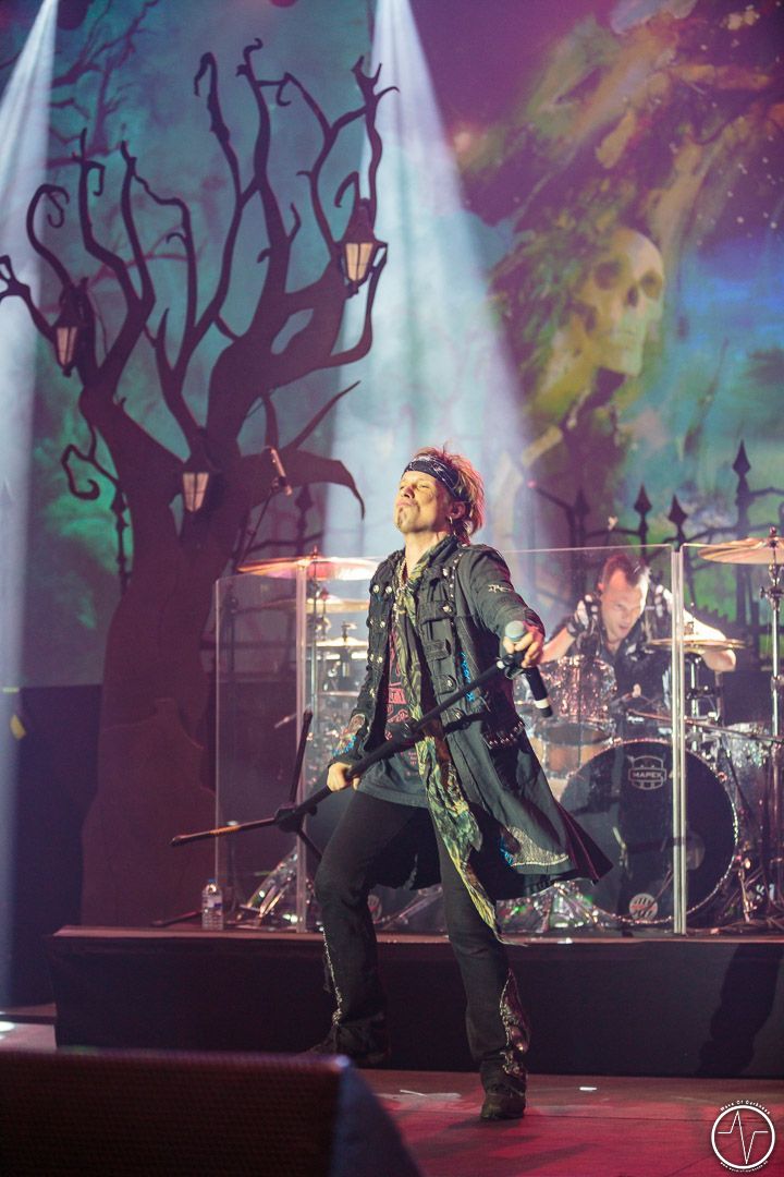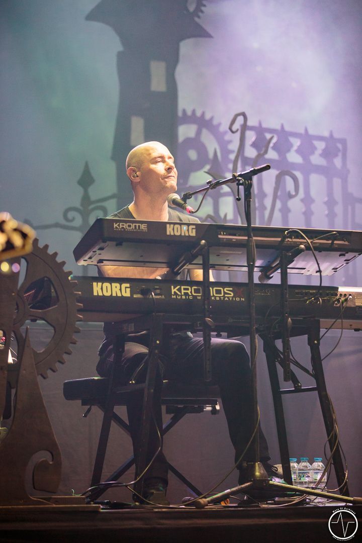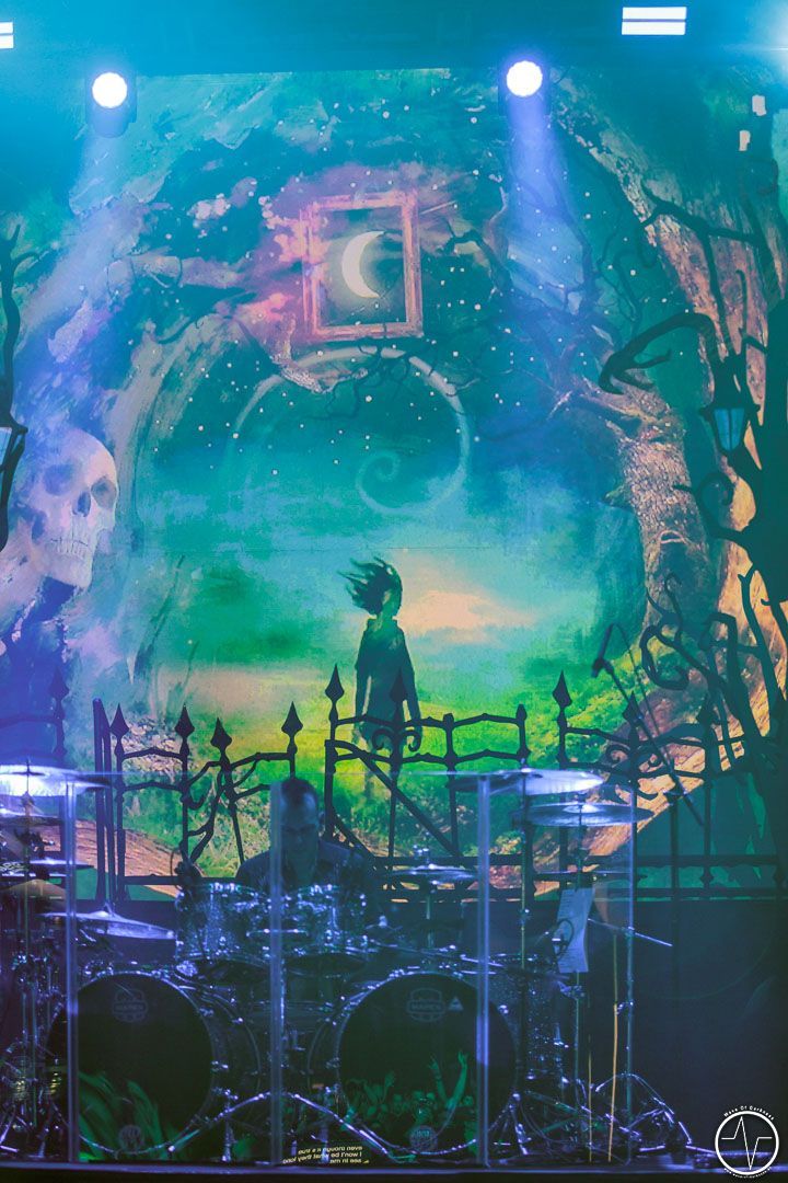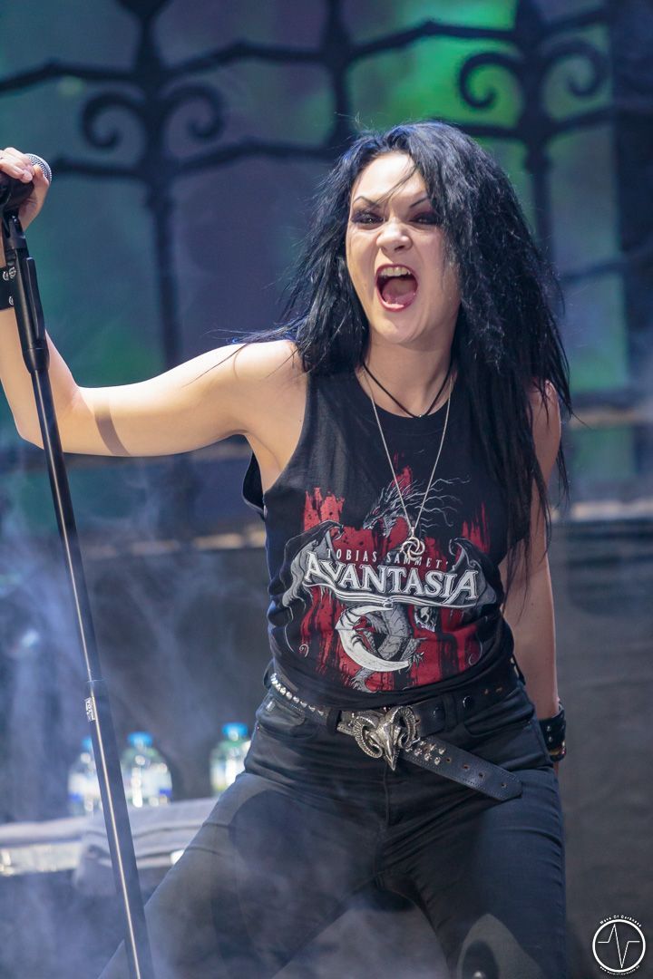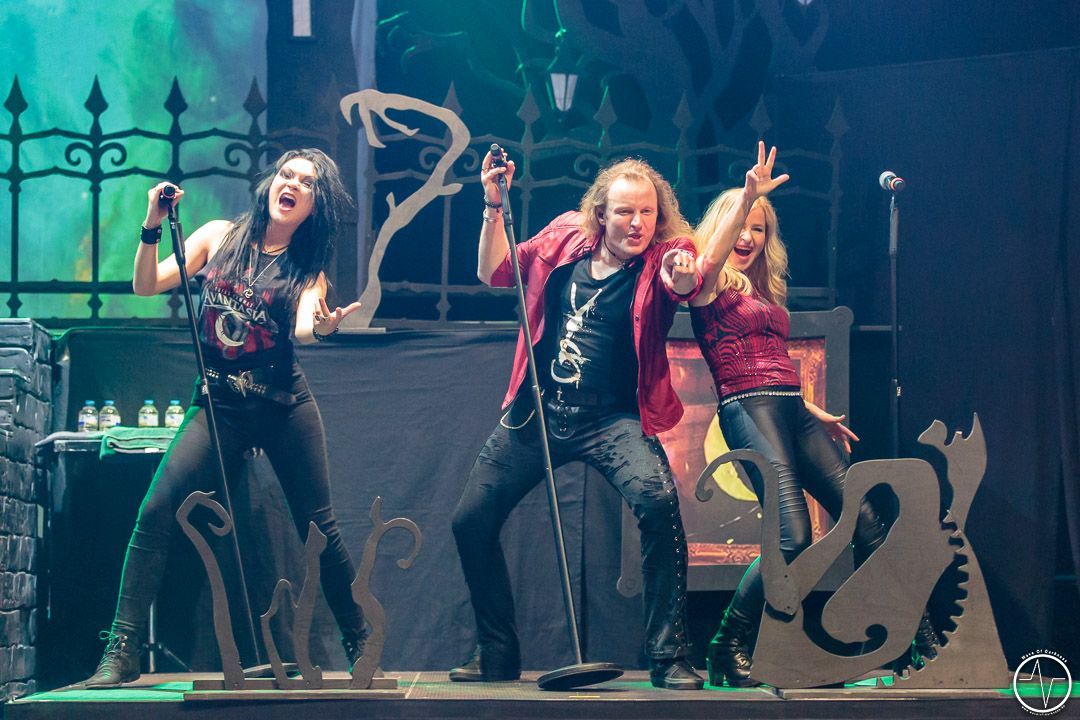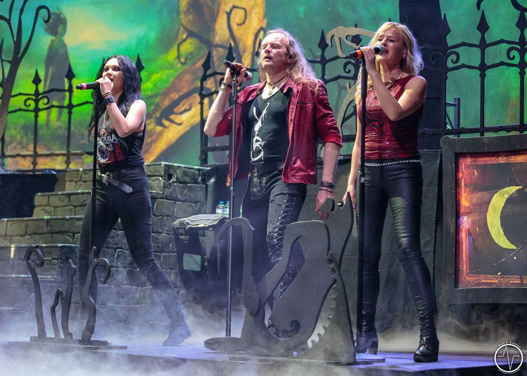 Avantasia spielt ohne Vorband. Warum auch? Denn bei einem geplanten Bühnenkonzept von über drei Stunden ist das Programm voll und ganz gefüllt, weswegen die Anhängerschar in die Saarlandhalle gekommen ist. Nachdem der große Avantasia-Vorhang gefallen ist, entpuppt sich ein aufwendiges Bühnenbild angelehnt an den Stil von Tim Burton‘s „Nightmare before Chistmas“. Tobias Sammet erscheint zum Auftaktlied „Ghost in the Moon“ im Hintergrund auf einem erhöhten Steg, während die restlichen Bandmitglieder Position beziehen. So steht Oliver Hartmann mit seiner Gitarre gut gelaunt vor dem Background-Gesang in Person von Seven Spires Frontfrau Adrienne Cowan, der Sängerin Ina Morgan und dem deutschen Songwriter Herbie Langhans, von denen jeder im weiteren Verlauf des Abends als Leadsänger/in das Spotlight genießen darf. Felix Bohnke von Edguy am Schlagzeug, Sascha Paeth (ehemals Heavens Gate) an der Lead-Gitarre und Miro Rodenberg (ehemals Aina) am Keyboard vervollständigen Tobis beachtliche Band.