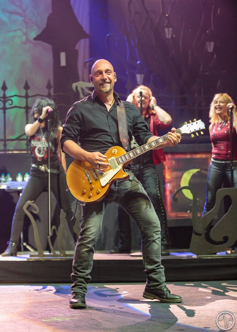 Highlight des Avantasia-Konzepts waren und sind schon immer die Gastauftritte. Kostprobe gefällig? Eric Martin von Mr. Big, Ex-Queensryche-Sänger Geoff Tate, Bob Catley von Magnum, Pretty Maids Frontmann Ronnie Atkins und Jørn Lande ehemals Masterplan tummeln sich im munteren Wechsel auf dem Podium – meist im Duett mit Tobias Sammet, stellenweise auch in anderer Konstellation. Sammet gibt sich als Entertainer und erzählt von der Single-Auskopplung im Vorfeld des aktuellen Albums, bei der sich die Plattenfirma zunächst sträubte, den 12-Minuten-Song wegen Radiountauglichkeit zu veröffentlichen. „Habt ihr in den letzten 25 Jahren mal das Radio angemacht? … Man kann sich geehrt fühlen, wenn man dort nicht gespielt wird. Wir machen handgemachten Heavy Metal!“, so der Frontmann aus Fulda unter lautstarkem Beifall seiner saarländischen Fans. Doch die bekommen bei der nächsten Unterhaltungspause ebenfalls ihr Fett weg, als Sammet seine englischsprachige Ansage unterbricht und scherzend kommentiert: „Hier sind einige Leute, die kein Deutsch verstehen … und ich meine nicht die Saarländer.“
