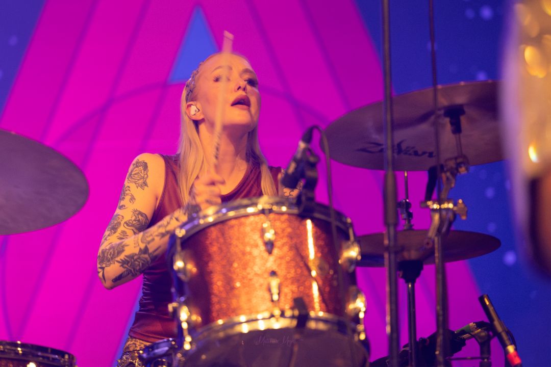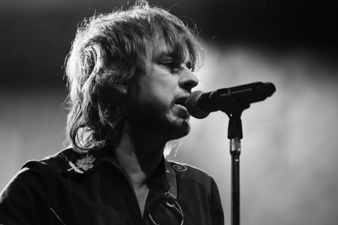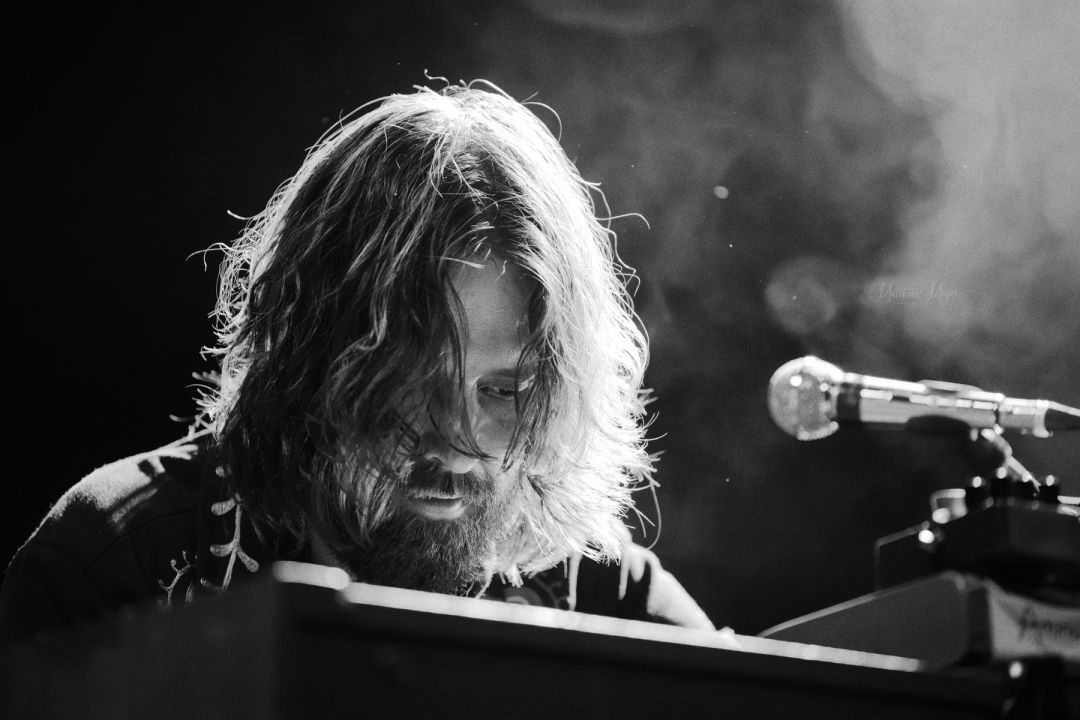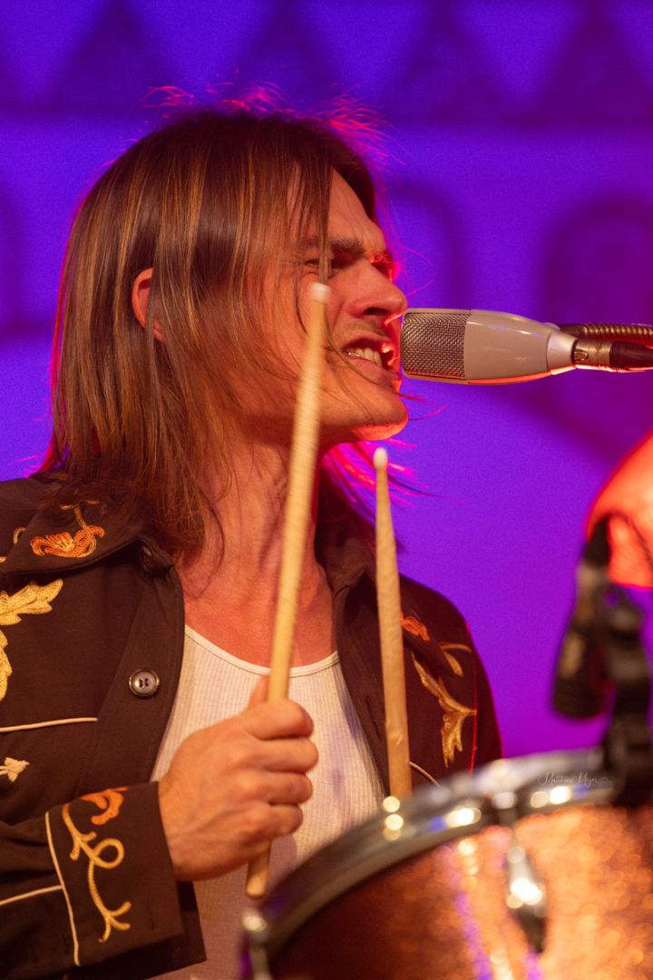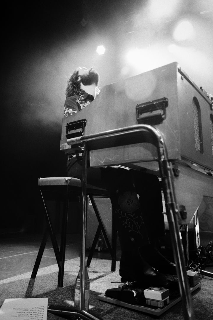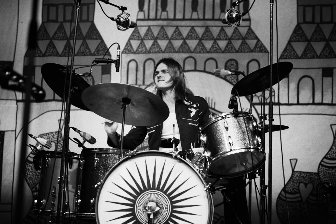 Pünktlich drei Minuten nach 20 Uhr geht es los. DeWolff betritt die Bühne. Für mich mit einem ungewöhnlichen Bühnen-Setup. Links eine fette Orgel, zentral die Drums und rechts ein Schrank mit unterschiedlichen Gitarren. Die niederländische Band besteht aus Pablo van de Poel an den Gitarren und als Frontmann, seinem Bruder Luka van de Poel hinter dem Schlagzeug und Robin Piso, der den Tasten an der Orgel einheizt. Optisch steht der Abend voll unter dem Thema Vintage der 70er. Der Sound von DeWolff setzt dort auch an.