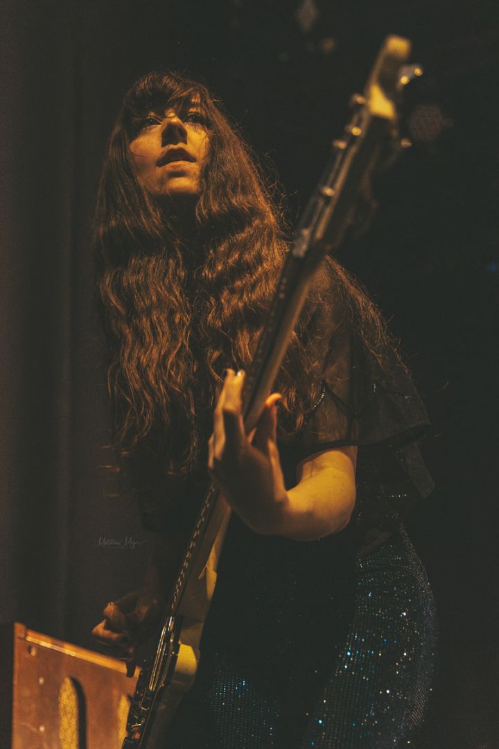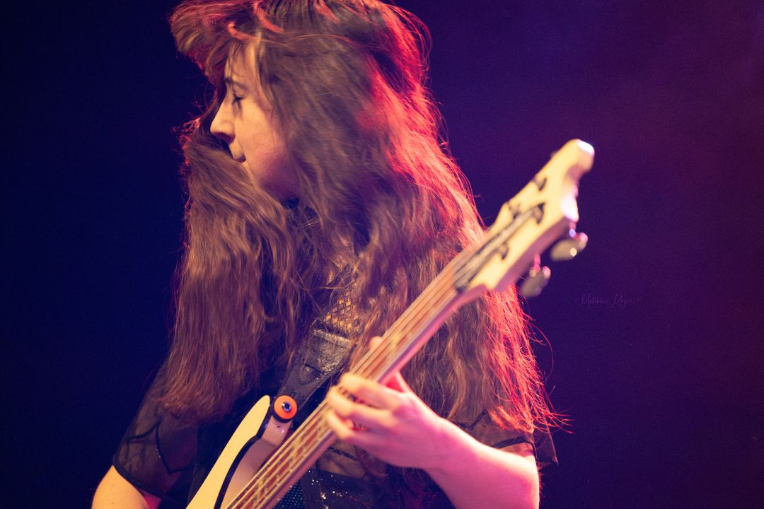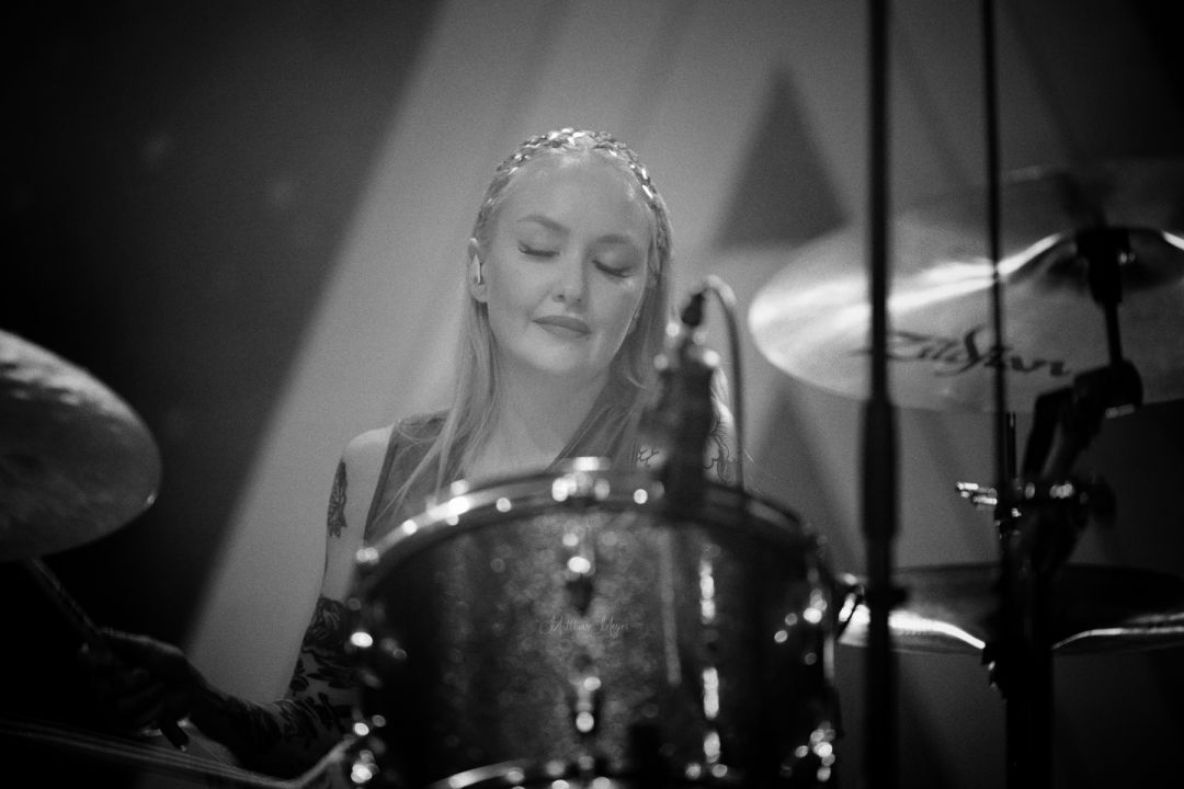 Gegen 21:45 Uhr betrat dann auch die Band die Bühne, wegen der ich gekommen war. Elin Larsson mit ihren Mannen. Ähh…. Mannen? Was ist denn da los? Während sie 2024 beim letzten Gig in Frankfurt (Wave of Darkness hat berichtet) noch von drei Männern flankiert wurde, steht von diesen jetzt nur noch Zack Anderson on Stage. Und er ist vom Bass zur Leadgitarre gewechselt. Am Schlagzeug sitzt nun Lina Anderbrerg und den Platz an der Bassgitarre spielt seit diesem Jahr Agnes Roslund. Nennt mich ruhig oberflächlich, aber rein optisch finde ich die neue Kombination schonmal super.