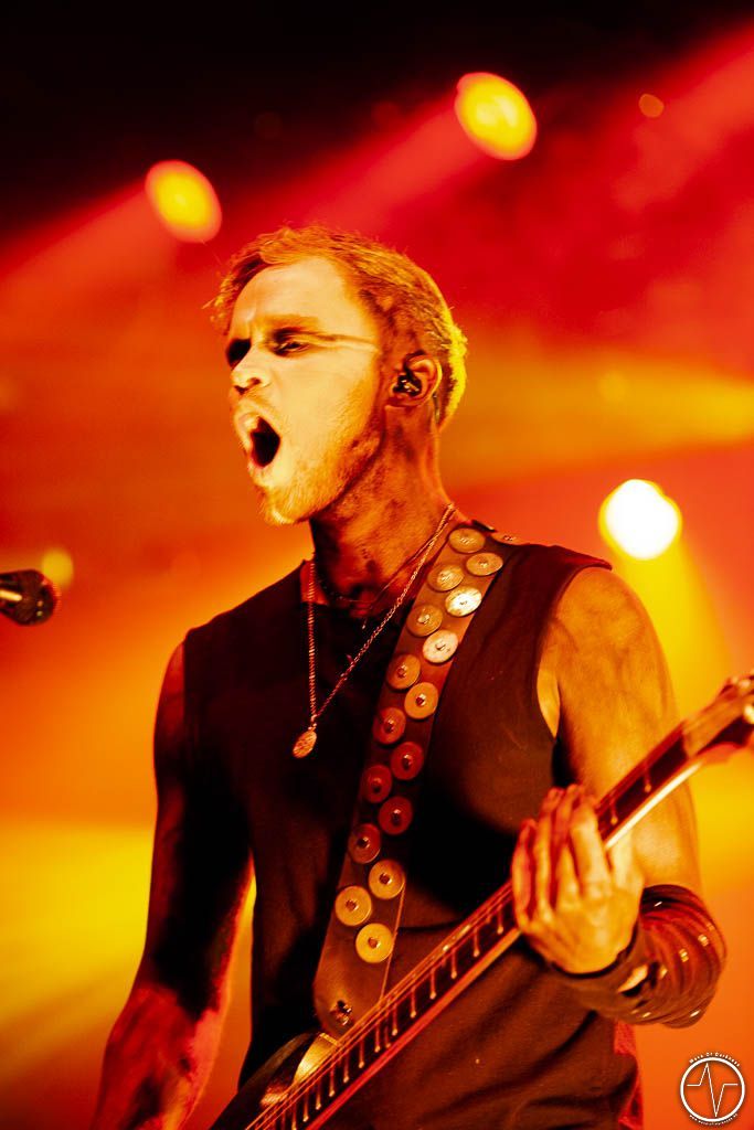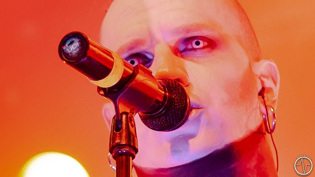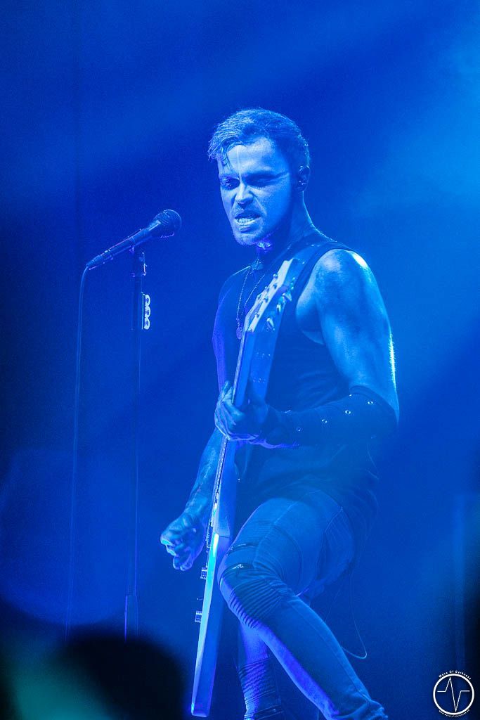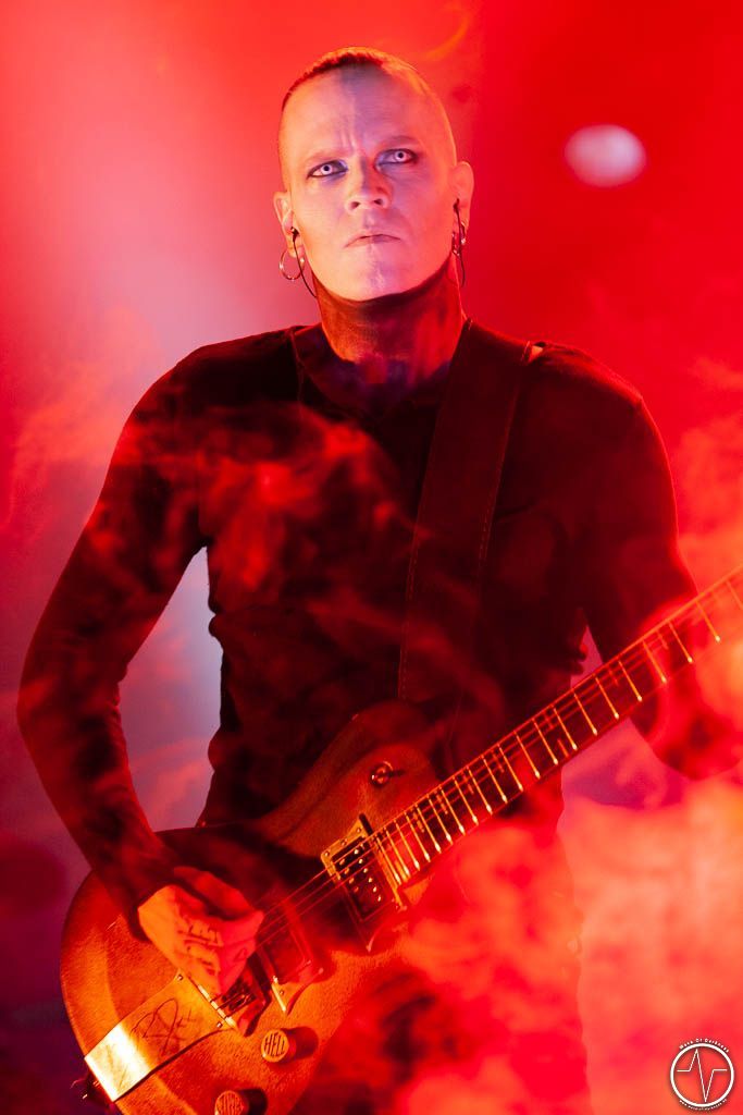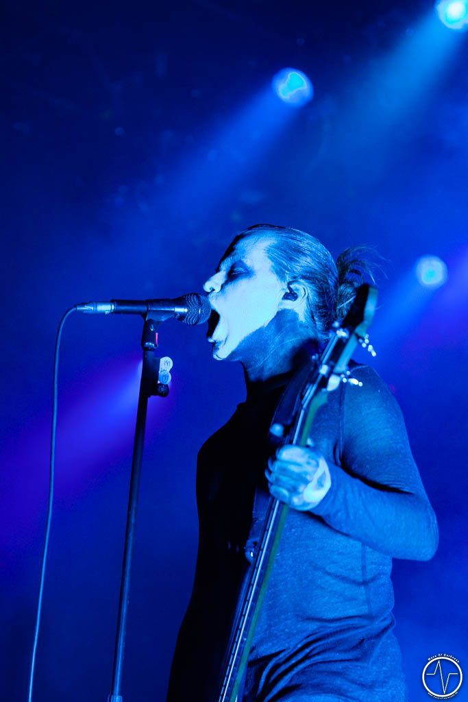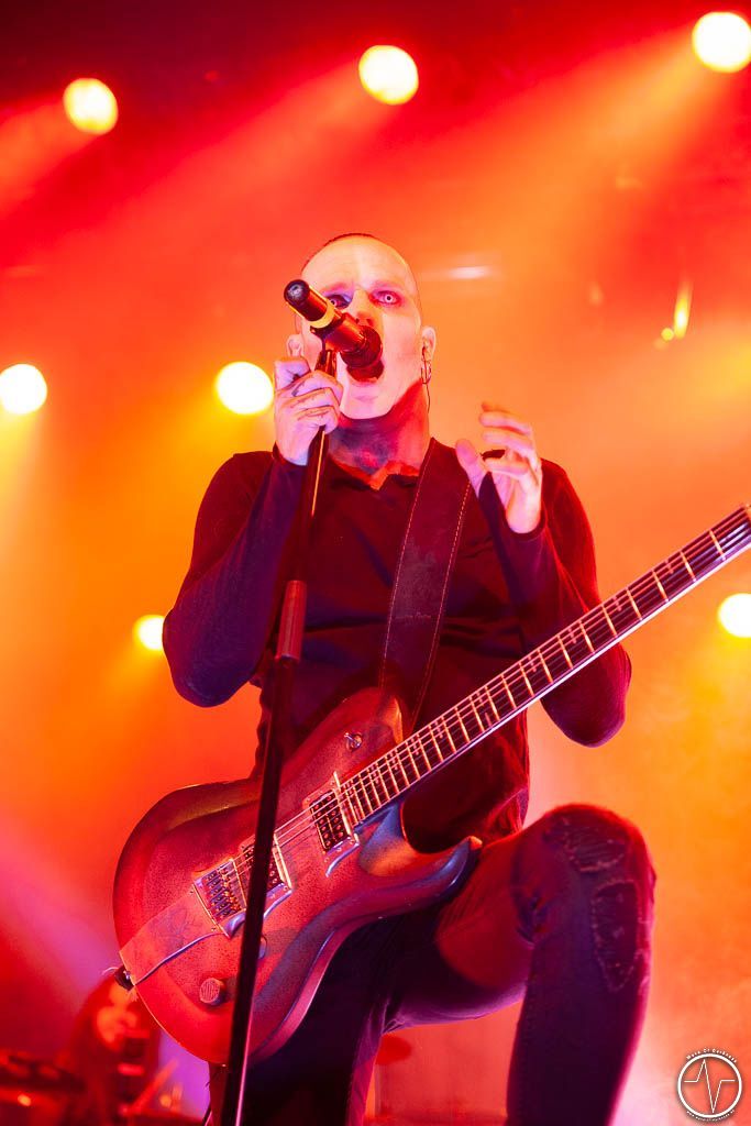 Schon nach den ersten Noten zog mich vor allem der sehr charismatische Frontmann in seinen Bann. Und damit spiele ich nicht nur auf seine Kontaktlinsen an, die mit jedem Blick in meine Richtung ein Frösteln auf die Haut zauberten. Nein es war viel mehr die sprunghafte Wechselhaftigkeit seiner Stimme. Eben noch klassische klare dunkle Gesänge, immer mit einem Hauch Depri in der Stimme und im nächsten Moment bricht ein kreischender Vulkan aus seiner Kehle. Und das Publikum brodelte mit! Die Batschkapp, gut gefüllt, ein Meer aus schwarzen Seelen brach mit jeder Note in brausendes Tosen aus und die eingeritzen Fans schienen bereits jedes Lied der gerade mal zwei Monate alten Thornstar Platte schon an den ersten drei Akkorden zu erkennen.