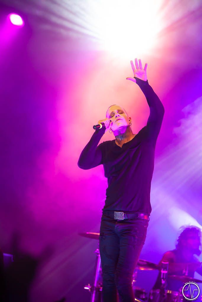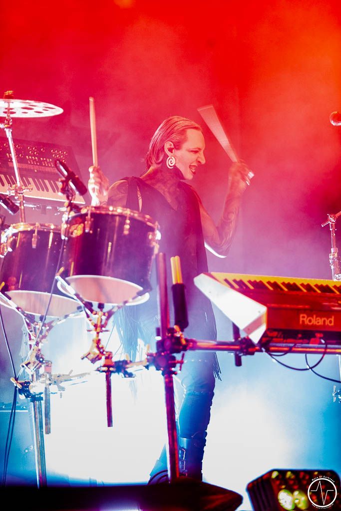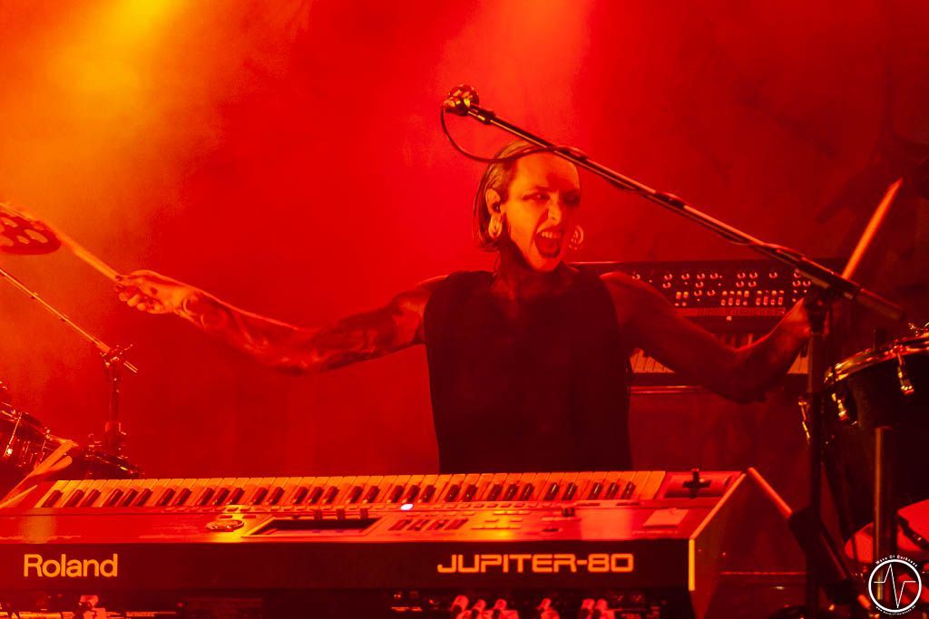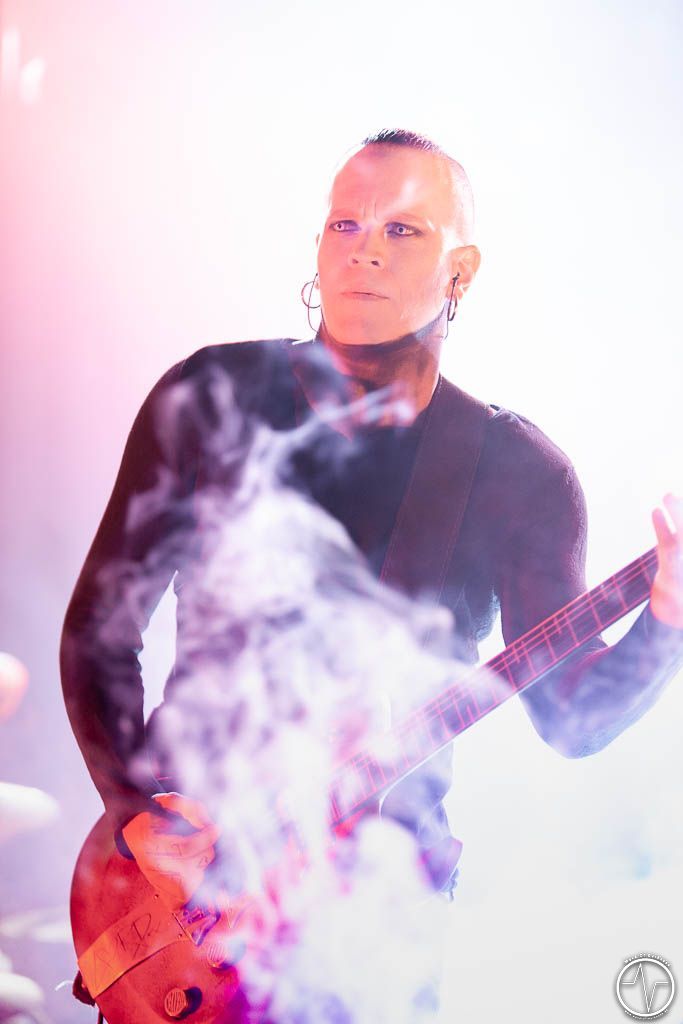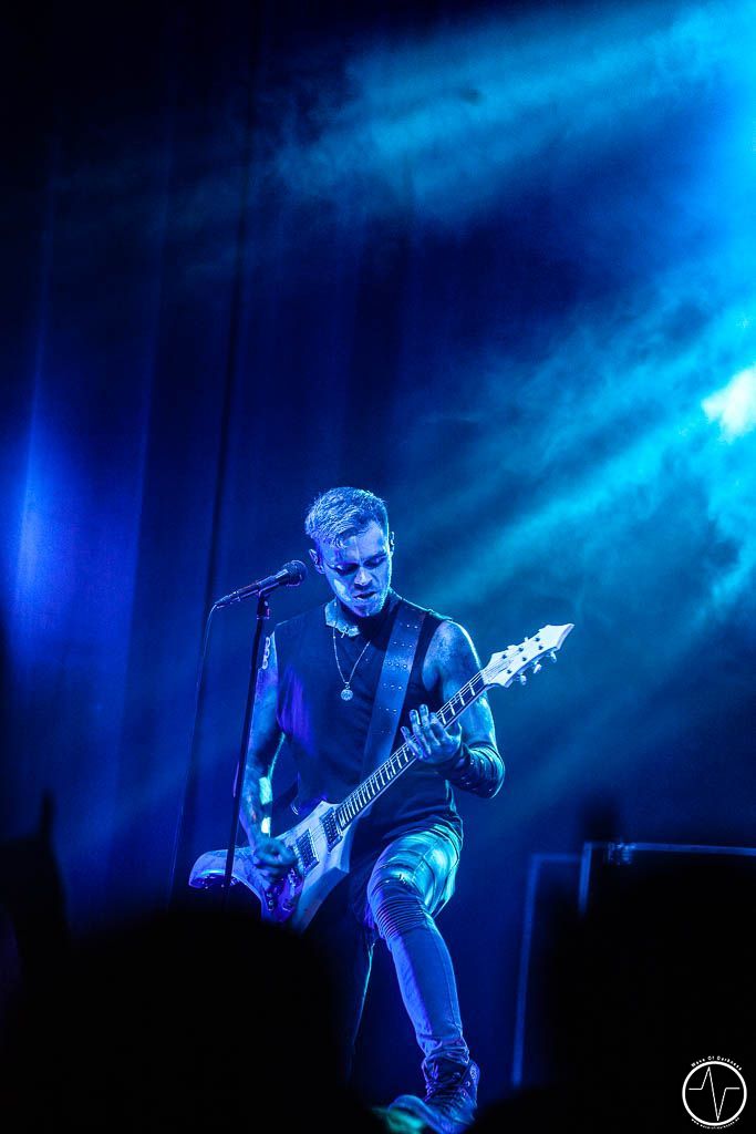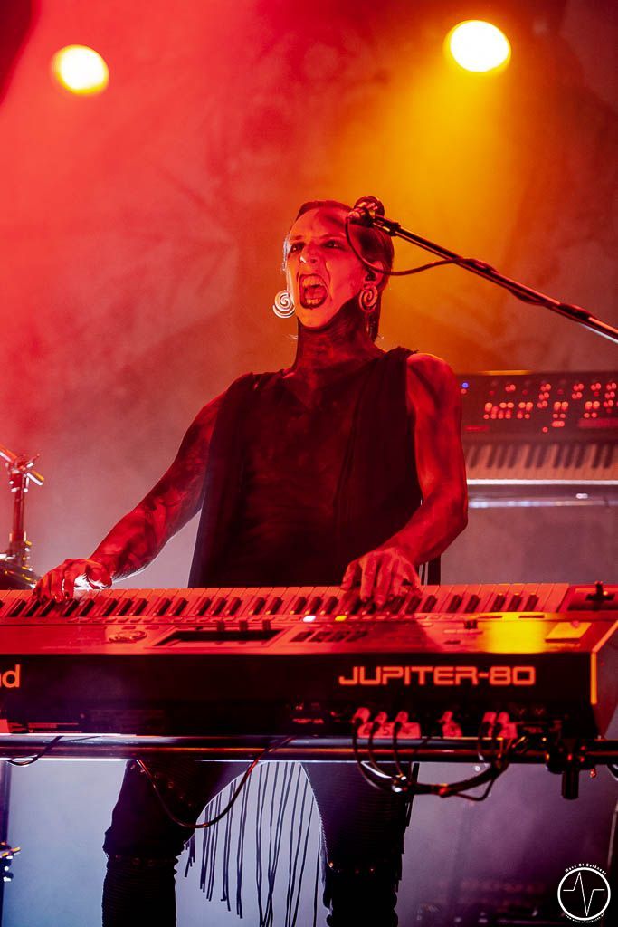 Schon nach den ersten Noten zog mich vor allem der sehr charismatische Frontmann in seinen Bann. Und damit spiele ich nicht nur auf seine Kontaktlinsen an, die mit jedem Blick in meine Richtung ein Frösteln auf die Haut zauberten. Nein es war viel mehr die sprunghafte Wechselhaftigkeit seiner Stimme. Eben noch klassische klare dunkle Gesänge, immer mit einem Hauch Depri in der Stimme und im nächsten Moment bricht ein kreischender Vulkan aus seiner Kehle. Und das Publikum brodelte mit! Die Batschkapp, gut gefüllt, ein Meer aus schwarzen Seelen brach mit jeder Note in brausendes Tosen aus und die eingeritzen Fans schienen bereits jedes Lied der gerade mal zwei Monate alten Thornstar Platte schon an den ersten drei Akkorden zu erkennen.
