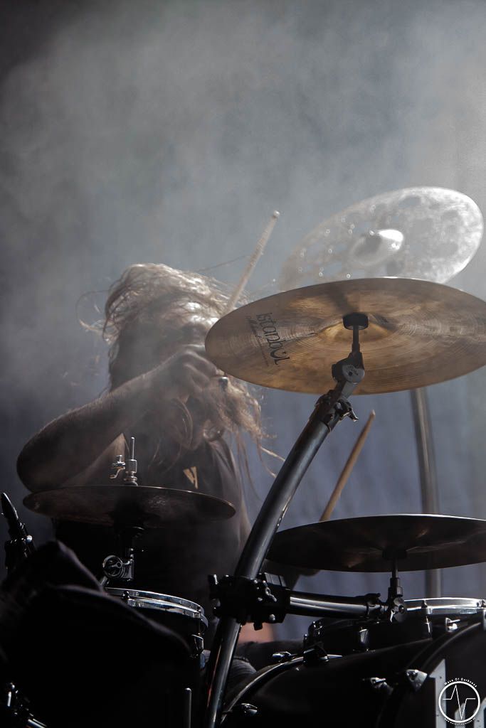 Die einzelnen Bandmitglieder, dezent leichenblass geschminkt, mit dem Hauch einer Moorleiche, agierten wie ein gemeinsamer Organismus auf der Bühne und zeigten was für ein eingespieltes Team sie sind und dass Musik für sie eben nicht nur ein Business ist (auch wenn sie mittlerweile beim, im Metal Kreis sehr bekannten und kommerziell erfolgreichen Label Napalm Records sind) sondern vor allem eine Leidenschaft, mit der sie ihren Fans einen Blick in ihre innerste Schwärze schenken.