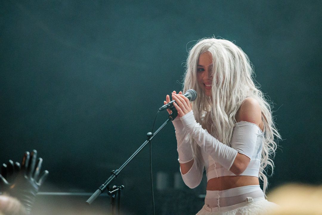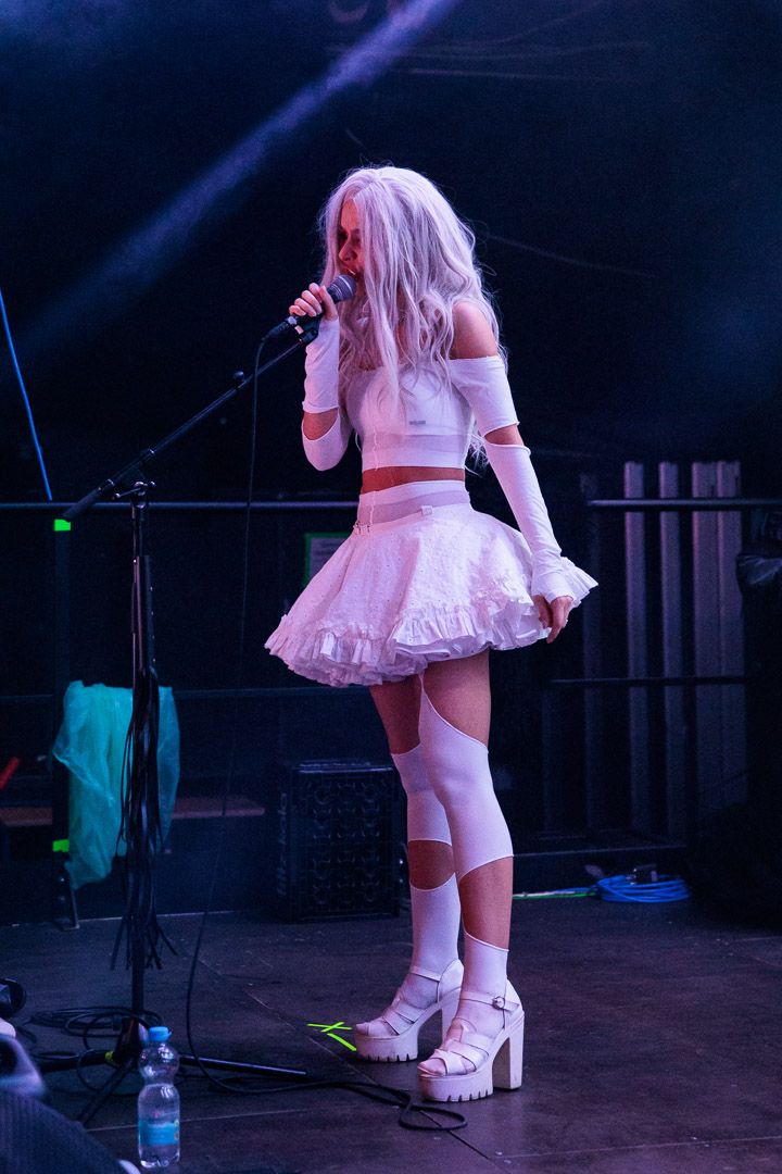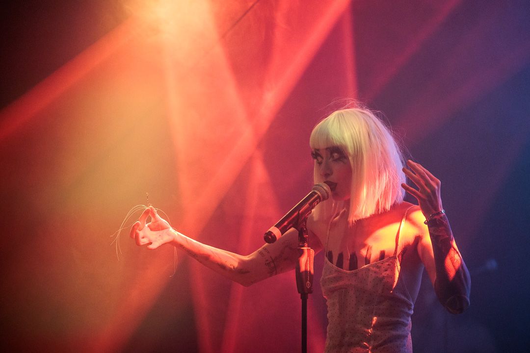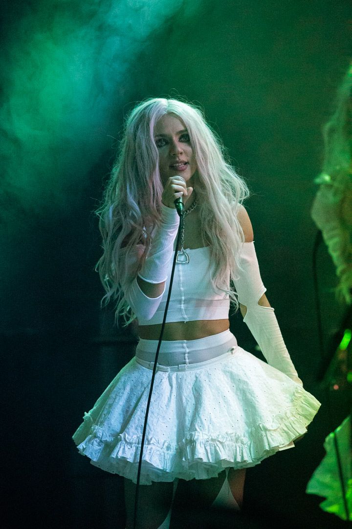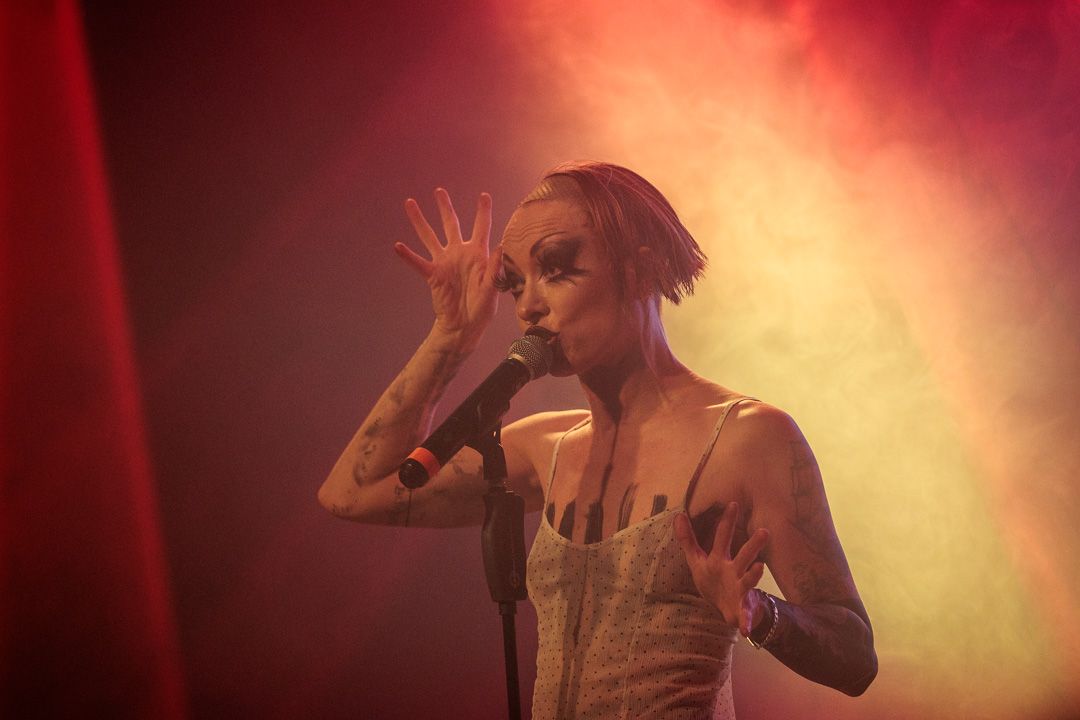 „Get Your Overdose“ war nicht nur ein Versprechen, sondern eine Aufforderung, sich voll und ganz der exzessiven Show hinzugeben. Die Grausamen Töchter erfüllten ihr Versprechen: Ihr Auftritt war ein hypnotisierender Trip, der das Publikum in einen Strudel aus musikalischer Ekstase und visueller Überwältigung zog. Die nicht immer leichten Inhalte wurden durch die konsequent groteske Bühnenshow der ausdrucksstarken Sängerin und ihren Mitstreiterinnen unterstrichen, die es meisterhaft schafften, das tanzwütige Publikum im Club Das Bett bis zum Schluss in ihren Bann zu ziehen.