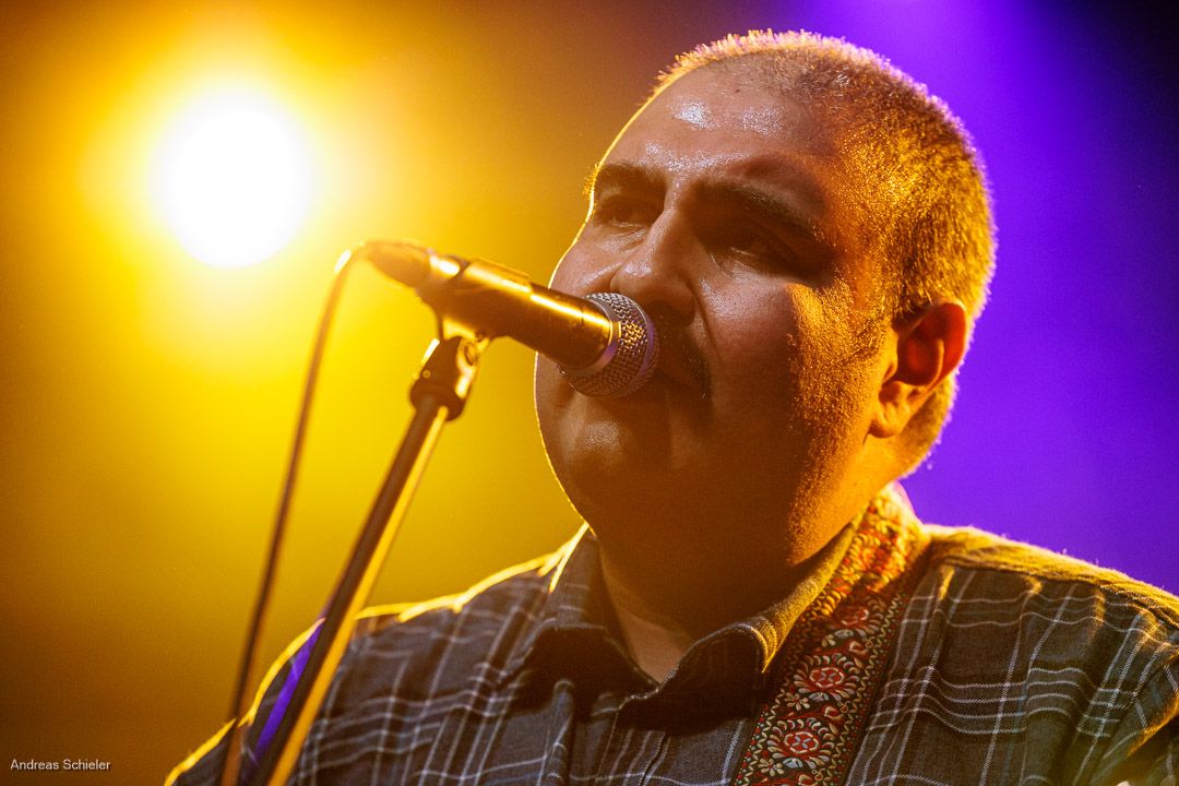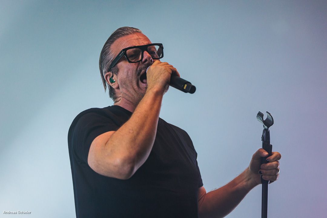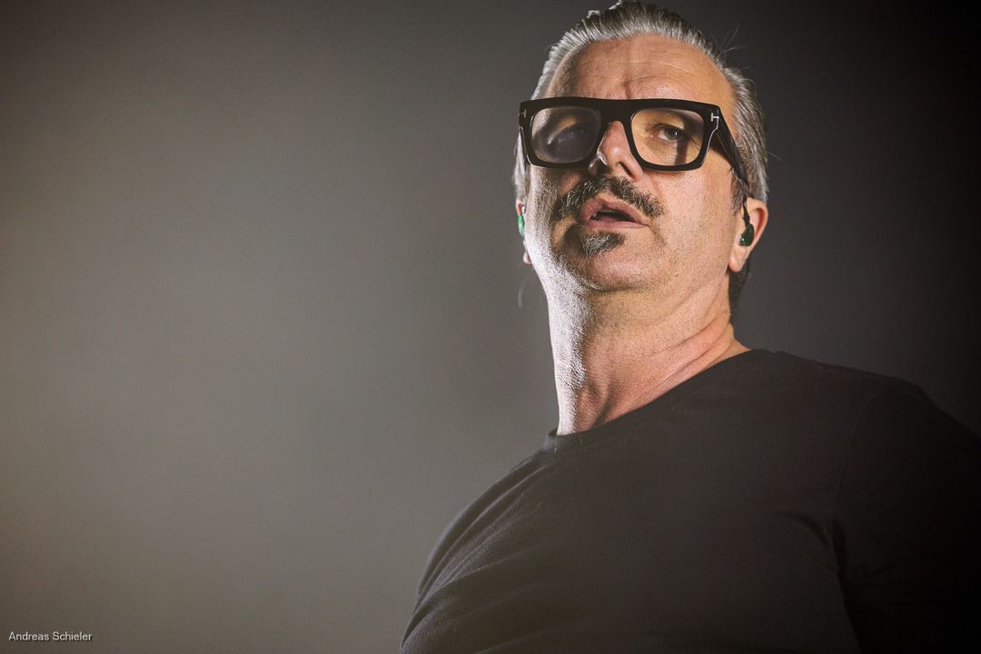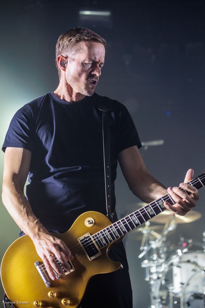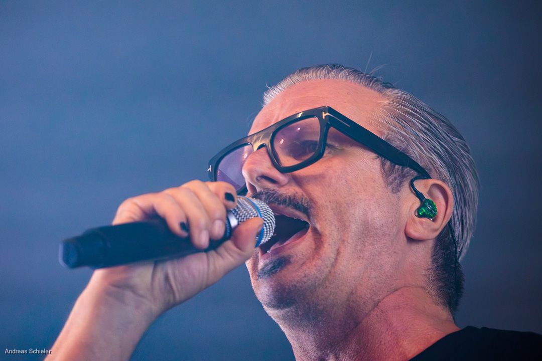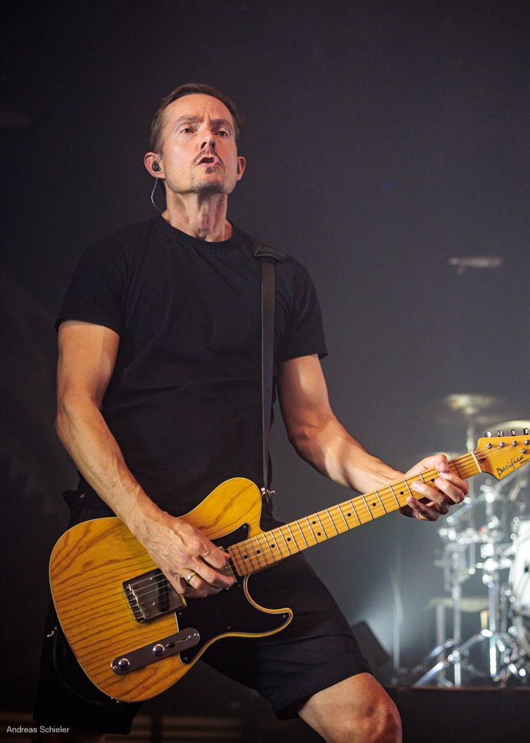 Als der Hamburger Klampfbube unter anerkennendem Applaus die Bühne verlässt, fallen uns sofort wieder die beiden übergroßen Haifischportraits auf, zwei große Weiße kurz vor dem Zubeißen, die in Anlehnung an das Cover des Erfolgsalbums „Time To Move“ das folgende Programm einläuten sollen. Die Anspannung steigt. Zu „Radio Gaga“ und aus einer Nebelwand heraus erscheint die Band nach und nach, hinter einer Barriere aus Nebel und Scheinwerferlicht erscheinen Podeste und ein zentral platziertes Schlagzeug. Allen Bandmitgliedern wird so ein gleichberechtigter Platz auf der Bühne eingeräumt. Dies zeigt sich auch, als der Einspieler in den Opener „Countdown to Insanity“ übergeht. Die Band wirkt tight und eingespielt, auch wenn es noch ein paar Lieder braucht, bis sich jeder richtig warm gespielt zu haben scheint. Im uniformen Look ganz in Schwarz und mit hochgezogenen Crew Socks, gibt man sich bewusst als Band, nicht als Einzelkünstler. Die Show bietet einen wunderbaren Querschnitt durch die Alben, wobei doch den Songs von „Time to Move“ ein größerer Anteil eingeräumt wird. Dies wird deutlich, als ein erstmals ein Gast auf die Bühne gebeten wird. Niemand geringerer als der ehemalige Sänger Dave Gappa, der bei der Urbesetzung dabei war, gesellt sich unter lautem Applaus zur Band, die uns mit einem energetischen Time-To-Move-Medley einen ersten Höhepunkt beschert und noch mehr Bewegung auf die Bühne bringt. Still steht im Saal nun keiner mehr!