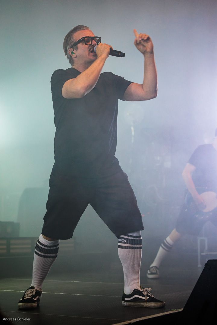 Die eingangs erwähnte grimmig-bedrohliche Bühnenkulisse sollte nicht über die optimistische Spielfreude der mittelalten Herren hinwegtäuschen. Immer wieder spricht Sänger Henning den kreativen Willen zur Neuerfindung der Band an, und schätzt sich glücklich in der legendären Batschkapp spielen zu dürfen. Schließlich kündigt er fast bescheiden die neue Single „Fallout“ an, die sofort ins Ohr geht und von den Fans dankbar angenommen wird, auch wenn es ein etwas neuer Sound ist. Im Verlaufe des Sets wird einem aber auch klar, dass die H-Blockx nicht nur einen Sound beherrschen. Songs wie „Little Girl“ und großartige Coverversionen wie Rick Springfields „Celebrate Youth“ und die brachiale wie geniale Version von „The Power“ zeigen die musikalische Vielseitigkeit einer Band, die eigentlich nie nur in einer Schublade stecken wollte.