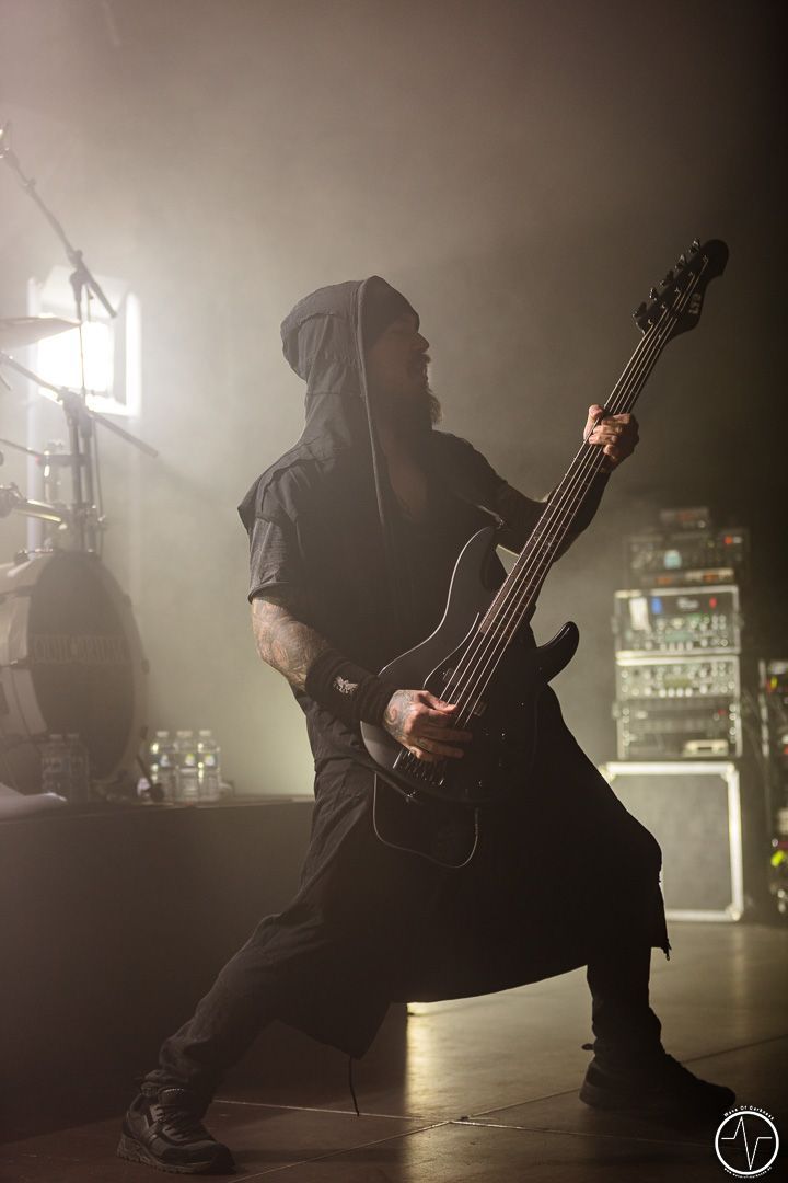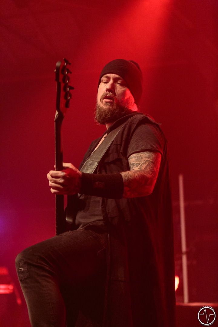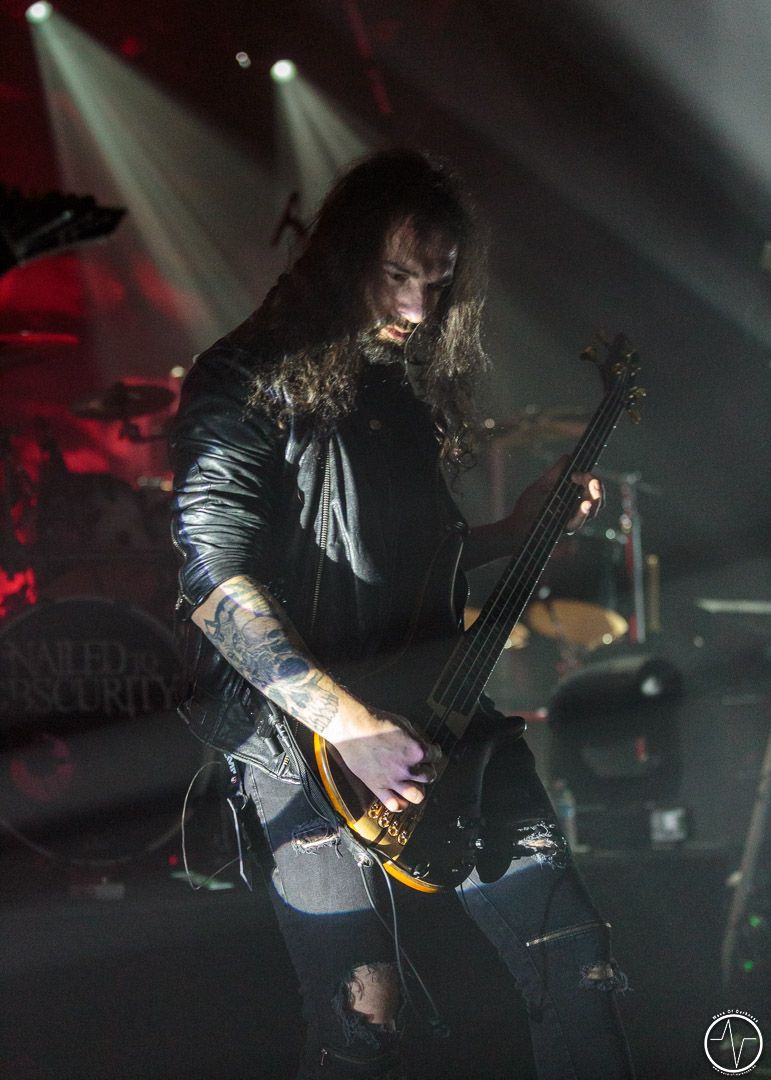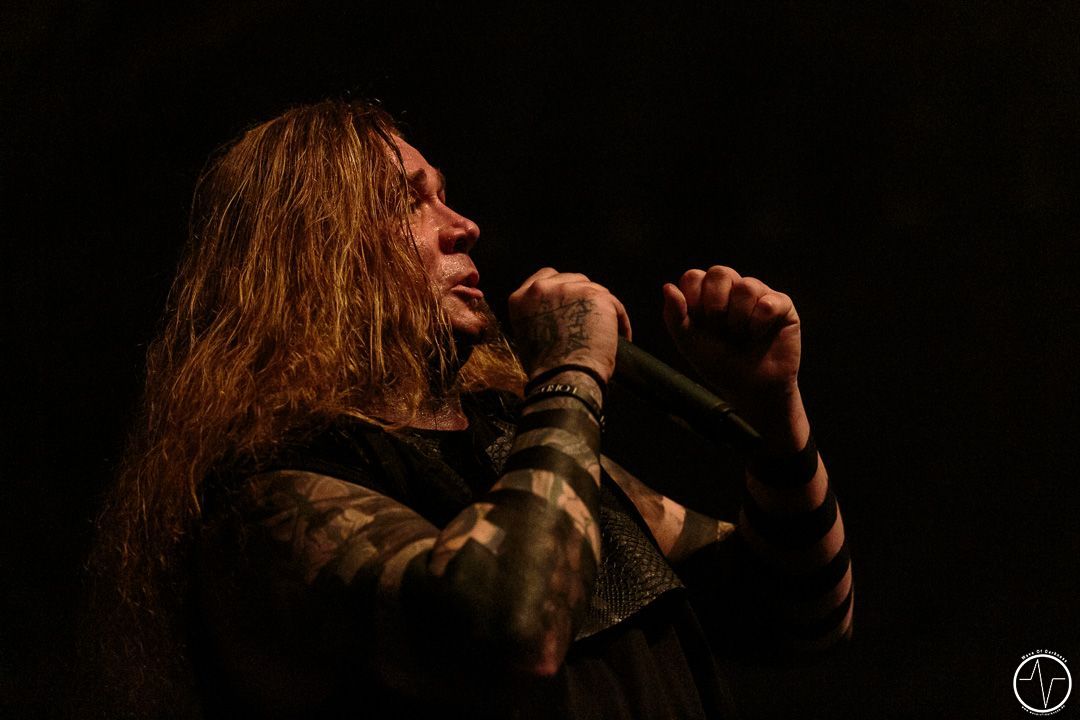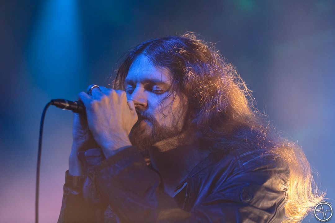 Aufgrund dessen, dass gleich vier Bands sich angekündigt haben, startet der Konzertabend schon um 18 Uhr. Dachten wir. Jedoch müssen Oceans leider ihren Auftritt absagen, weil der Sänger erkrankt ist. Der Rest der Band ist dennoch anwesend und steht den Fans am Merch-Stand für Autogramme, Selfies sowie zum Smalltalk bereit. So beginnt um 18:40 Uhr Nailed To Obscurity mit einer erweiterten Playlist. Nahezu im Dunkeln, nur von den umhertanzenden Spots kurzzeitig erwischt, bewegen sich die Fünf zu ihren ebenso dunklen Tönen auf der Bühne. Der überwiegend gutturale jedoch auch vereinzelt klare Gesang von Raimund Ennenga legt sich über schrammendes Saitenspiel von Jan-Ole Lamberti und Volker Dieke. Hin und wieder mischt ein melodiöses Solo – charakteristisch für viele ihrer Lieder – ein und gibt dem tragenden Klangteppich eine Auszeit. Nach 40 Minuten Spielzeit, in der vor allem die Songs aus dem aktuellen Album „Black Frost“ dominieren, werden Nailed To Obscurity im Applaus verabschiedet und machen das Podium frei für Chris Harms mit seinen Mannen.