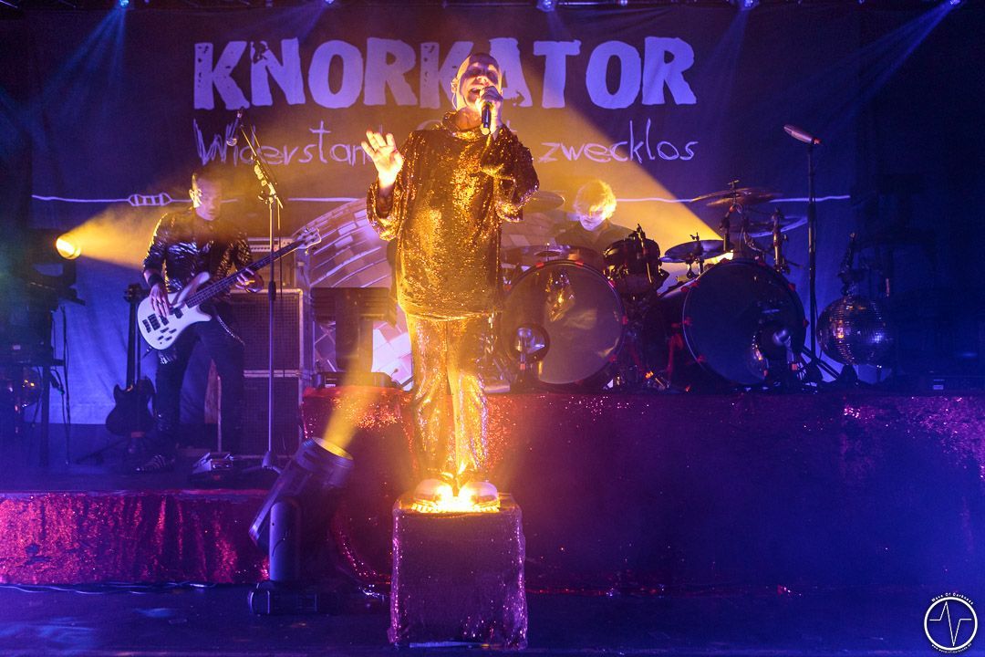 Die meiste Band der Welt ist auf ihrer Tour in Heidelberg angekommen. Am 28.02.2020 konnten sich die Besucher der halle02 nur schwer dem ganz und gar eigenen Charme von Knorkator entziehen. Denn bei dem live gebotenen, bizarren Wechselbad aus bunt zusammen gewürfelten Stilistiken, rüdem Gefluche und zarter Poesie bis hin zu pathetischem Größenwahn und infantilem Blödsinn ist innerer Widerstand zwecklos. Besser gesagt: „Zweck ist widerstandslos“. Denn ein Knorkator-Konzert ist nicht wie das andere und erst recht wie alle anderen Konzerte.