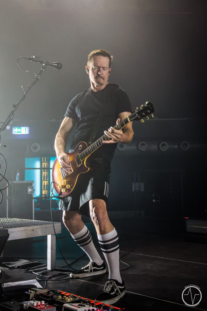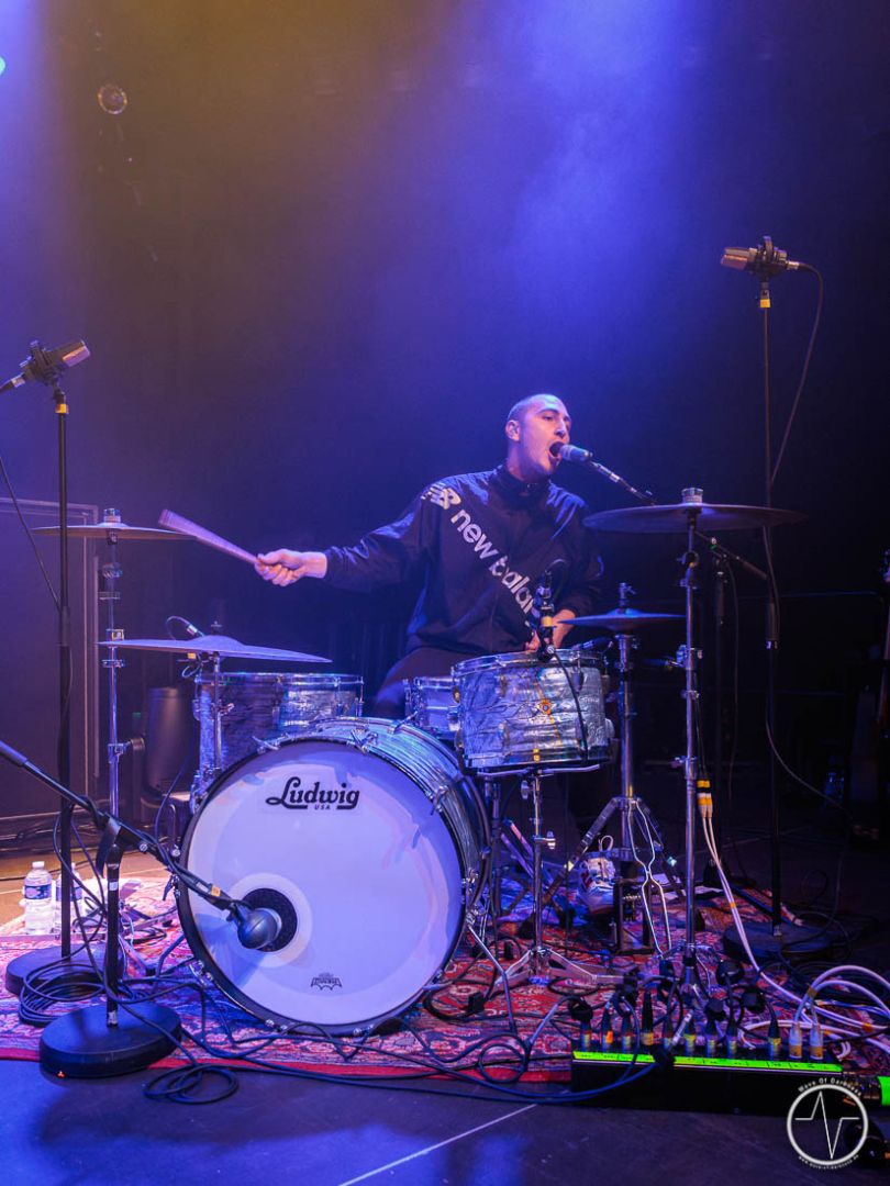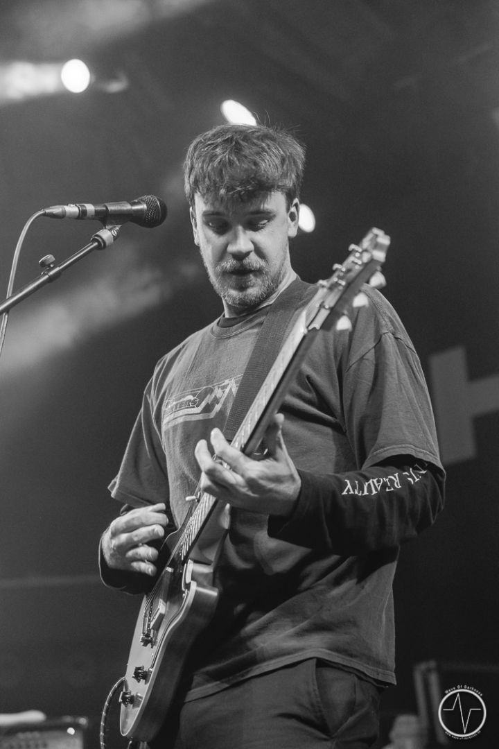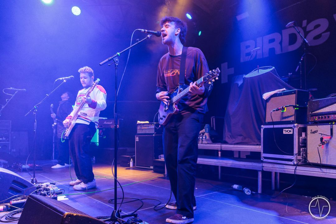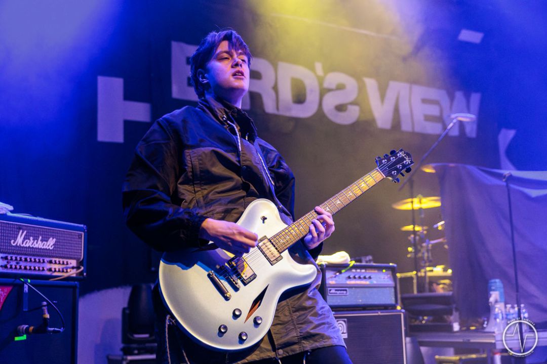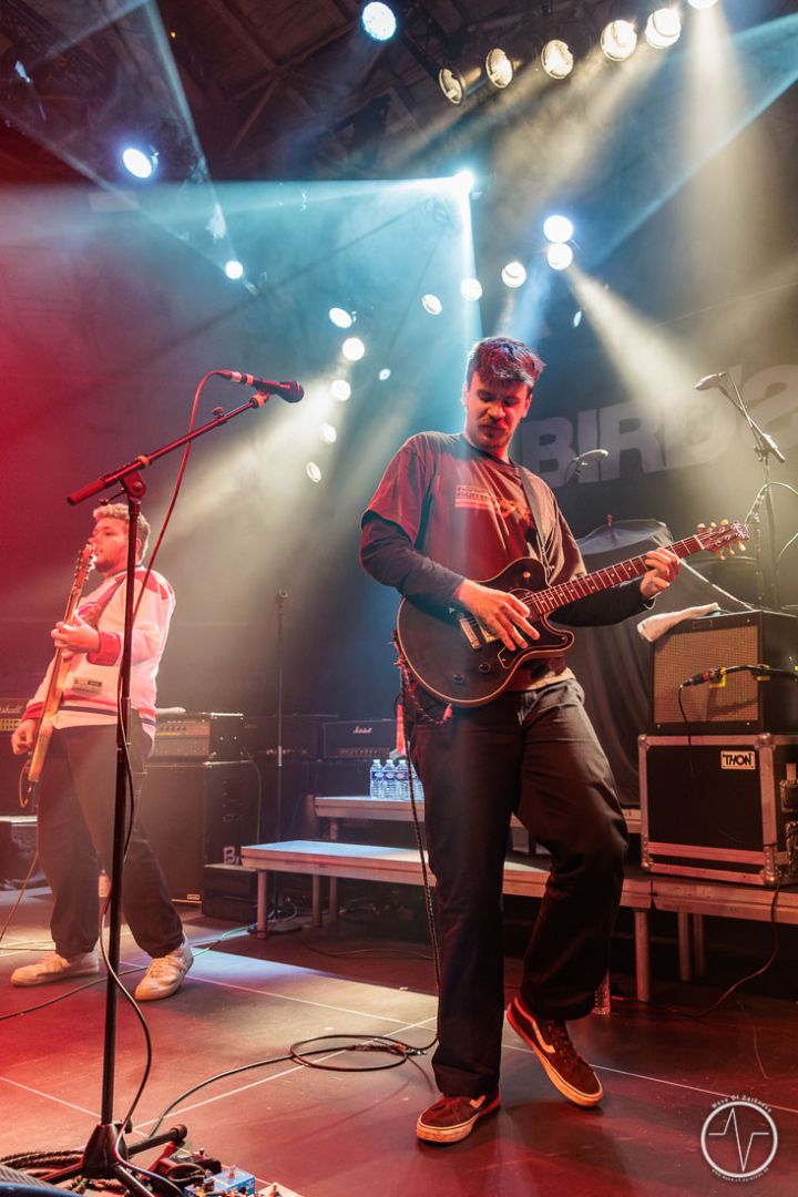Zunächst starten Bird’s View mit „Pin Drop“ den Konzertabend bei vollem Haus. Die Alternative-Rock-Band aus Frankfurt legt energisch vor und spätestens bei „Lay Down“ packt der wuchtige, grungige Gitarrensound die ersten Gäste. „Habt ihr Bock? Tanzt, trinkt, zerstört euch. Es ist Sonntagabend“, ruft der Sänger Niko Huber nach „Blinding Buzz“ und stimmt nebenbei die Gitarre nach. Das Publikum bleibt zunächst zurückhaltend, doch die vier Jungs liefern eine solide Grundlage, die den Saal wie beim neuesten Werk „Chaos B.C.“ auf Temperatur bringt. Der reißende Retro-Gitarrensound wird von Bass und harten Drums getragen, was dem Publikum zunehmend in die Beine fährt. Dass Bird’s View auch etwas ruhiger können, beweisen sie beim vorletzten Song „Too Old“, bevor sie für den finalen Song wieder Vollgas geben und die Garage auf Betriebstemperatur an den Headliner übergeben.