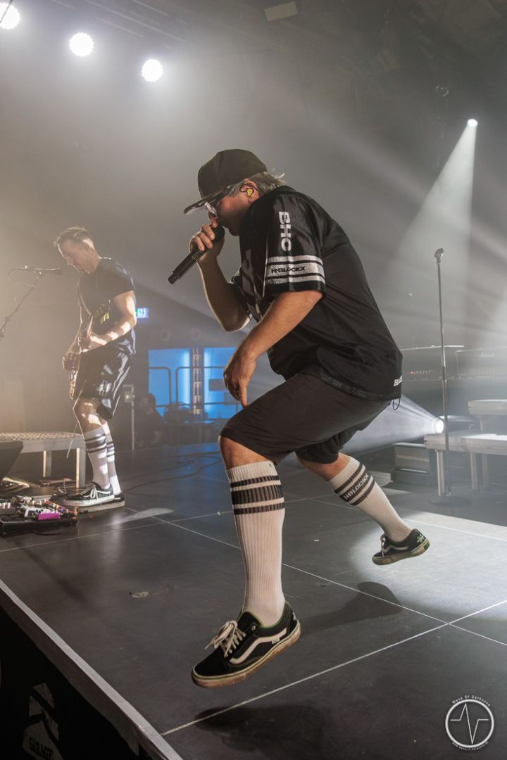 Dann geht das Licht aus, und zum Intro von „Straight_Outta_Nowhere“ wird es laut in der grölenden Halle. „Wer sind wir?“, ruft Henning Wehland. „H-Blockx“, brüllt die Menge immer wieder zurück. „Wir können es selbst kaum glauben. Wir sind zurück“, sagt der charismatische Frontmann nach „Fly“ und legt mit „How Do You Feel?“ nach. Und wie sich die Fans fühlen, machen sie von Beginn an klar. Die anfängliche Zurückhaltung weicht euphorischer Ausgelassenheit. Songs wie „Step Back“ und der Bandklassiker „Move“ lassen die Garage beben, die Fans springen bis in die letzten Reihen und singen textsicher mit. Ein Lächeln liegt auf den Gesichtern der Bandmitglieder. Ebenso unverkennbar wie ihr 90er-Crossover-Look: weiße Kniestrümpfe, schwarze Shorts, dunkles Trikot und Baseballcap. Nicht mehr so bunt wie früher, aber eindeutig H-Blockx.