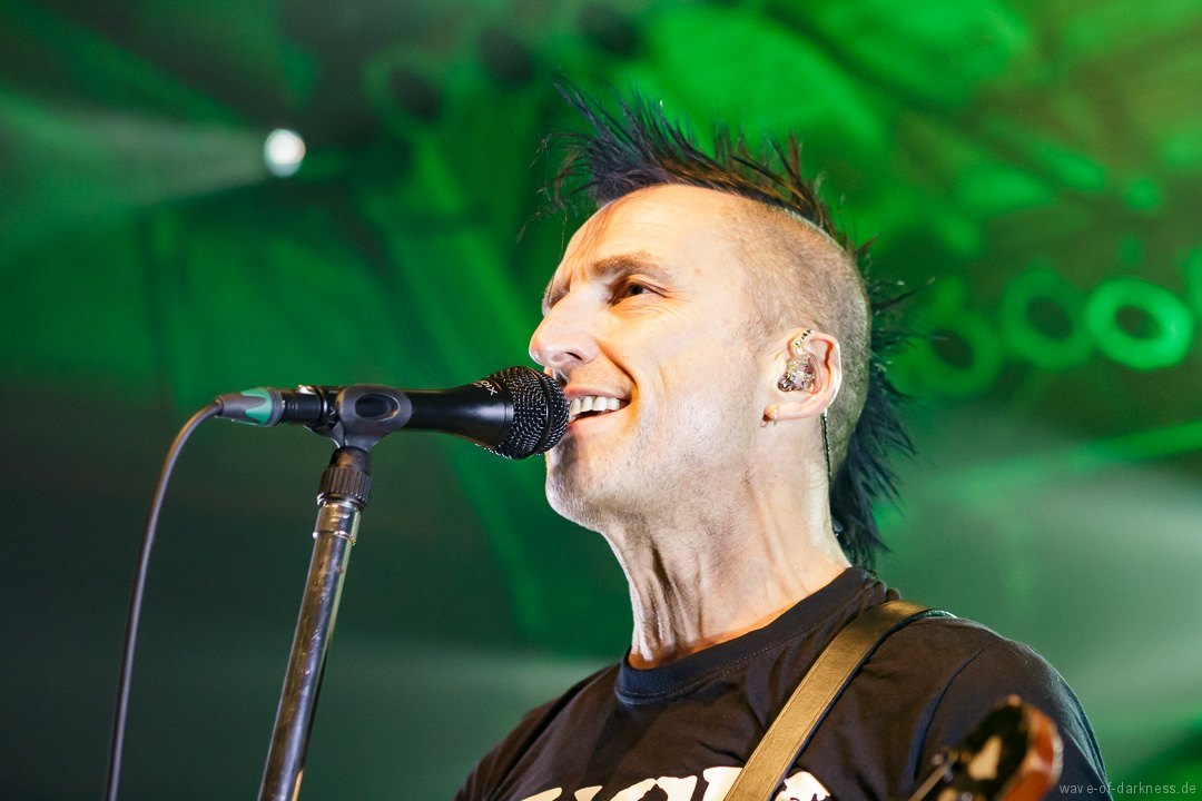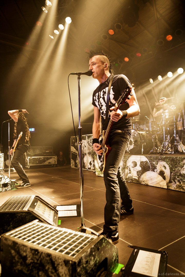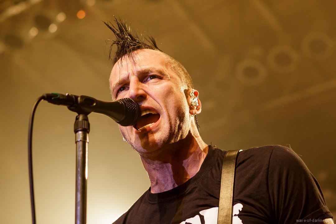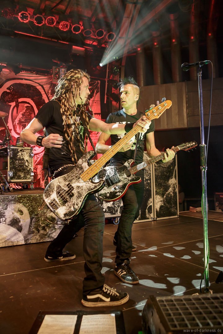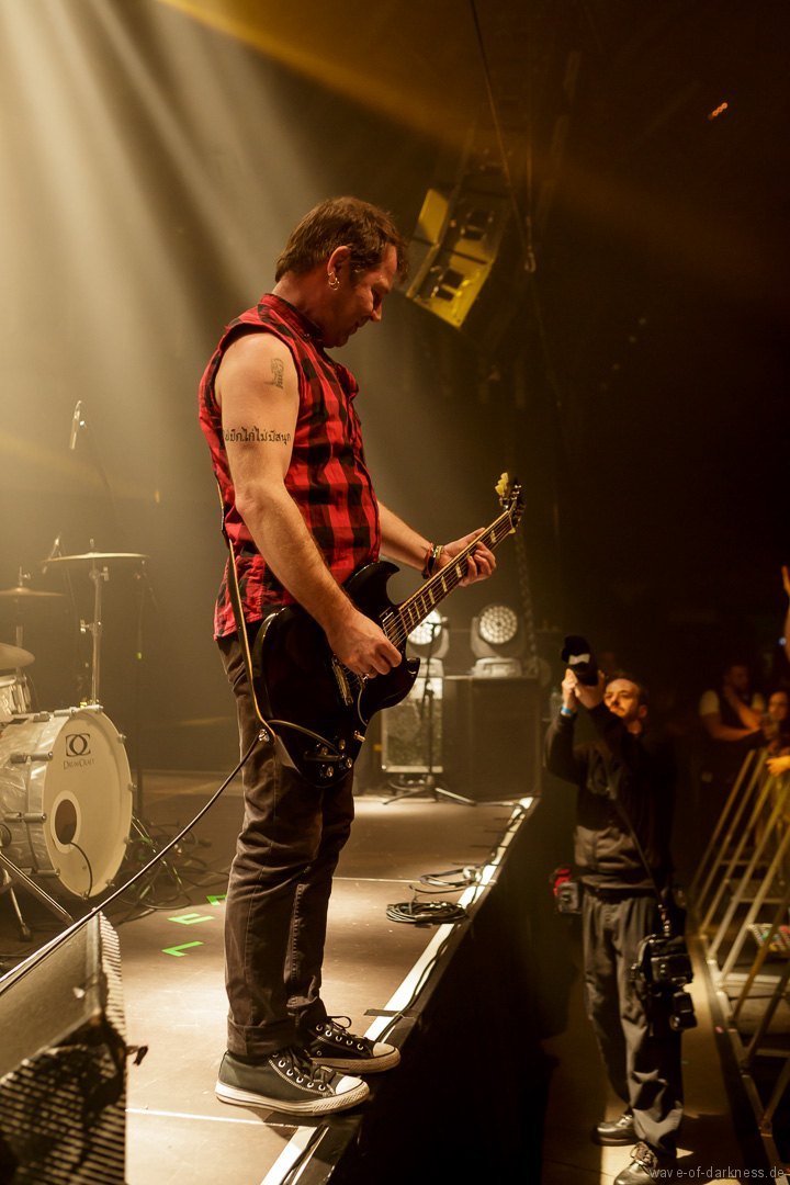 So fieberte das schon angeheizte Publikum dem Headliner entgegen. Doch WIZO ließ nicht lange auf sich warten. Nach einem kurzen Intro startete die Punkband aus Sindelfingen mit „Adagio“ von der aktuellen Scheibe „DER“. Vom ersten bis zum letzten Ton waren auch hier die Fans ganz nah bei der Band. Der sich nie schließen wollende Pogokreis wurde zeitweise von Bier getränkt, das in der Euphorie nicht ausgetrunken sondern einfach samt Becher in die Luft geworfen wurde. Dazu sah man wie sich junge Punks von der feiernden Menge mehr oder weniger kontrolliert nach vorne tragen ließen. In der etwa 100-minütigen Party wurde es aber auch zeitweise laut Axel „sentimental“. Mit nostalgischem Blick schweifte der Frontmann zwischendurch über die mitgröhlende Menge und bedankte sich bei den langjährigen Fans, welche die Band seit vielen Jahren unterstützte. Auch ließen Ralf und Axel es nicht aus, immer wieder den unverändert rebellisch sowie eindeutig linksorientierten Standpunkt der Punkband zu verdeutlichen. Insgesamt überzeugte WIZO mit einer mitreißenden Bühnenpräsenz und Publikumsnähe ohne große Effekthascherei und vollendete die ausgelassene Reise in den Deutschpunk der 80er und 90er. Fazit: Ein ausgelassener Punkrockabend mit zwei kultigen Bands in toller Feierlaune!