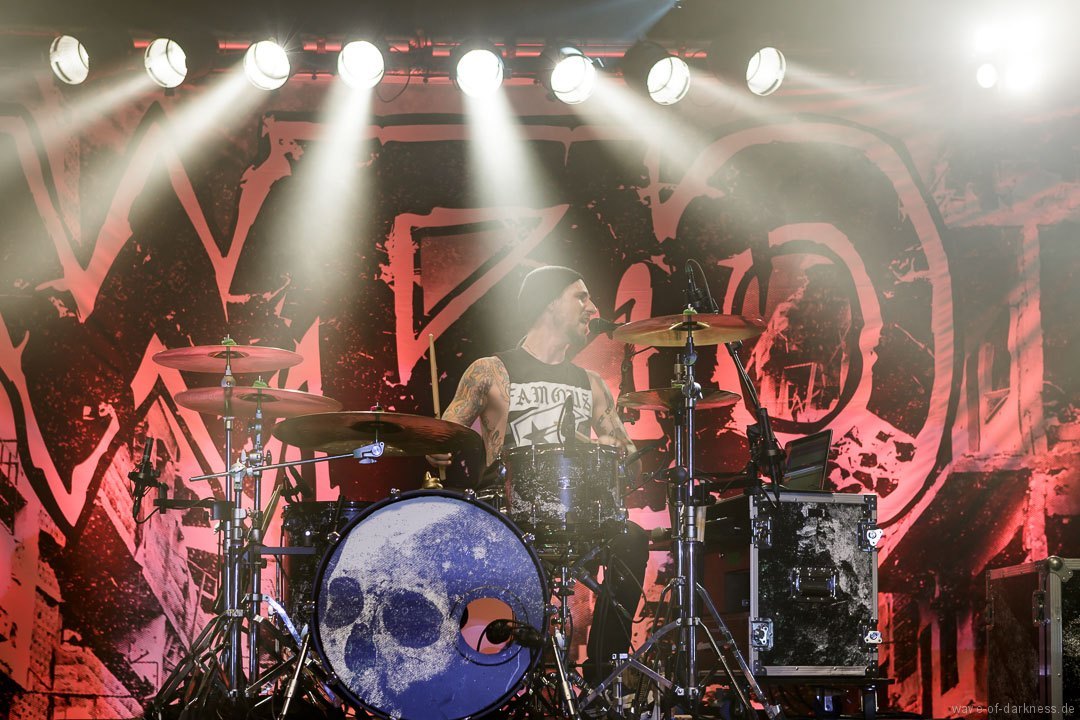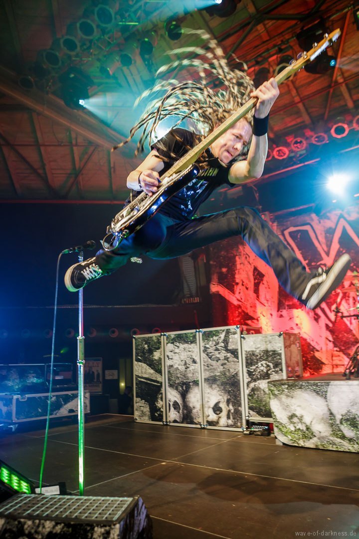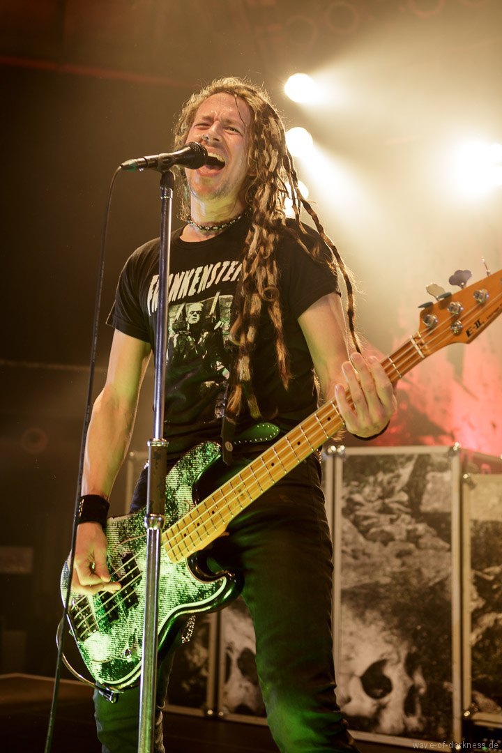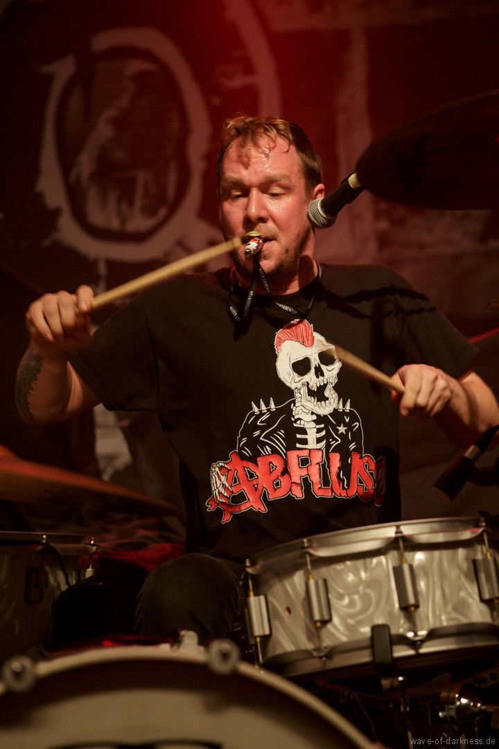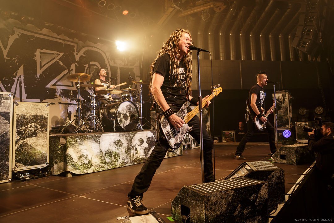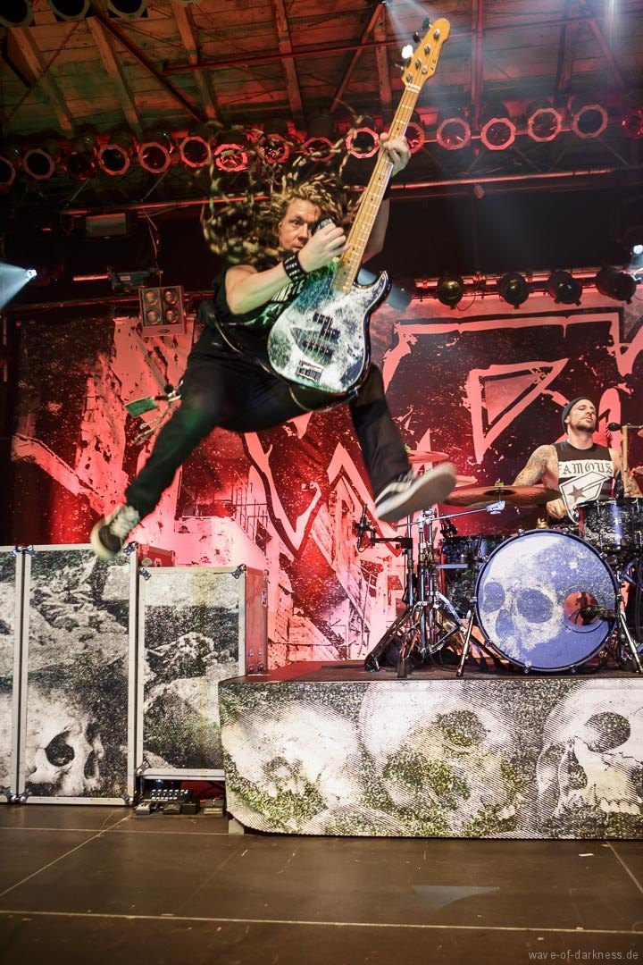 So fieberte das schon angeheizte Publikum dem Headliner entgegen. Doch WIZO ließ nicht lange auf sich warten. Nach einem kurzen Intro startete die Punkband aus Sindelfingen mit „Adagio“ von der aktuellen Scheibe „DER“. Vom ersten bis zum letzten Ton waren auch hier die Fans ganz nah bei der Band. Der sich nie schließen wollende Pogokreis wurde zeitweise von Bier getränkt, das in der Euphorie nicht ausgetrunken sondern einfach samt Becher in die Luft geworfen wurde. Dazu sah man wie sich junge Punks von der feiernden Menge mehr oder weniger kontrolliert nach vorne tragen ließen. In der etwa 100-minütigen Party wurde es aber auch zeitweise laut Axel „sentimental“. Mit nostalgischem Blick schweifte der Frontmann zwischendurch über die mitgröhlende Menge und bedankte sich bei den langjährigen Fans, welche die Band seit vielen Jahren unterstützte. Auch ließen Ralf und Axel es nicht aus, immer wieder den unverändert rebellisch sowie eindeutig linksorientierten Standpunkt der Punkband zu verdeutlichen. Insgesamt überzeugte WIZO mit einer mitreißenden Bühnenpräsenz und Publikumsnähe ohne große Effekthascherei und vollendete die ausgelassene Reise in den Deutschpunk der 80er und 90er. Fazit: Ein ausgelassener Punkrockabend mit zwei kultigen Bands in toller Feierlaune!