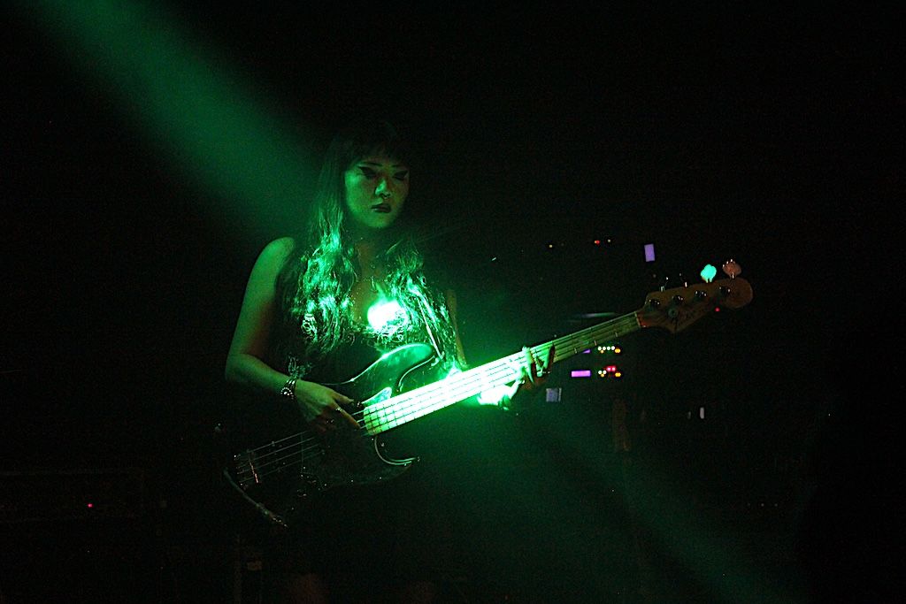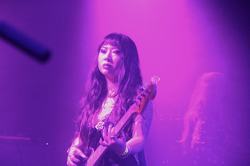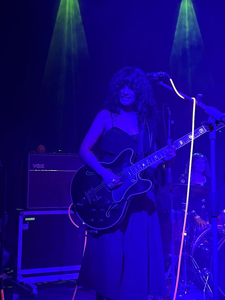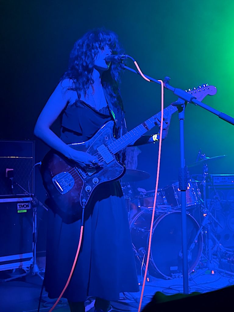 Die Setlist taucht tief ins aktuelle Album „DOGGOD“ ein: „Kiss Me Deep“, „Lost at Sea“, „Icicle“ – Songs, die sich wie Nebel um die Köpfe legen. Der Sound ist fuzzy, verhallt, hypnotisch. Sängerin und Gitarristin Sade Sanchez steht im Mittelpunkt, umgeben von Pedalen, aus denen sie Hall und Fuzz zieht. Ihre Stimme bleibt stoisch, irgendwo zwischen Rauch und Reverb, ohne Höhen, ohne Tiefen – aber mit einer ungreifbaren Spannung.