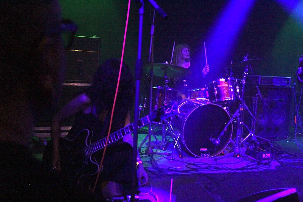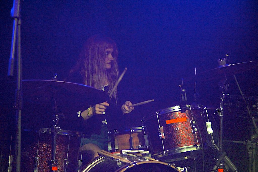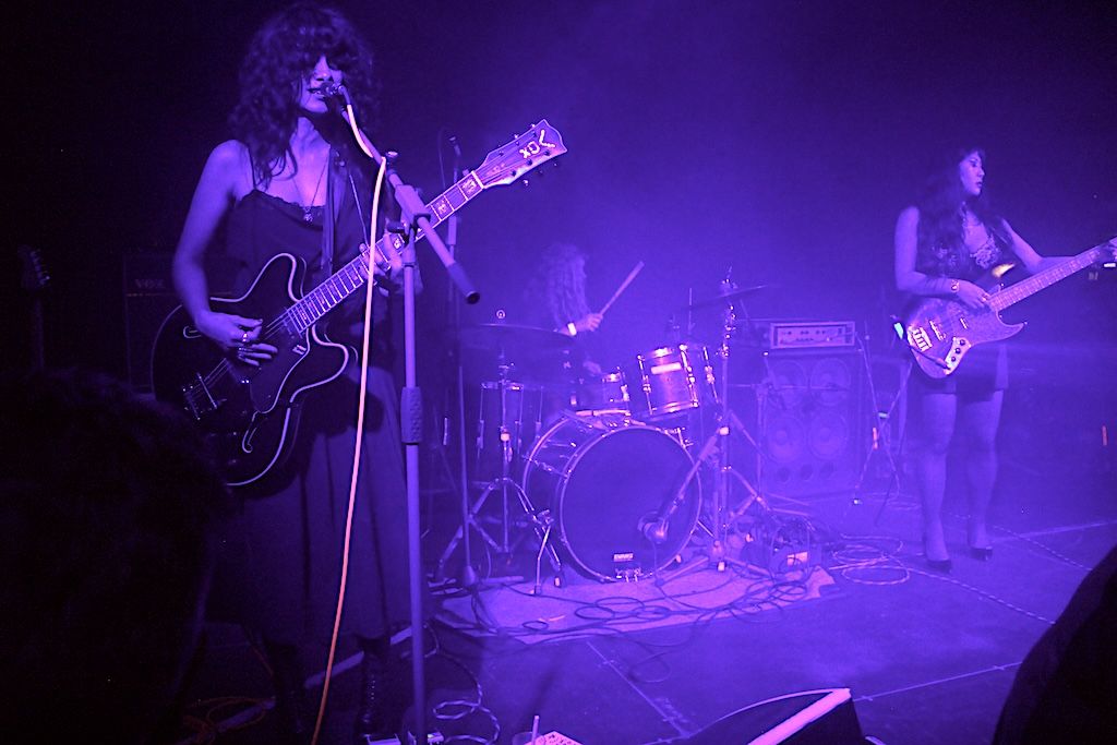 Dann Dunkelheit. Vier Frauen betreten Bühne des Kesselhauses. Kein Intro, keine Begrüßung. L.A. Witch stehen da wie Gestalten aus einem Lynch-Film mit einem Hauch Glitzer hier, eine Spitze da.