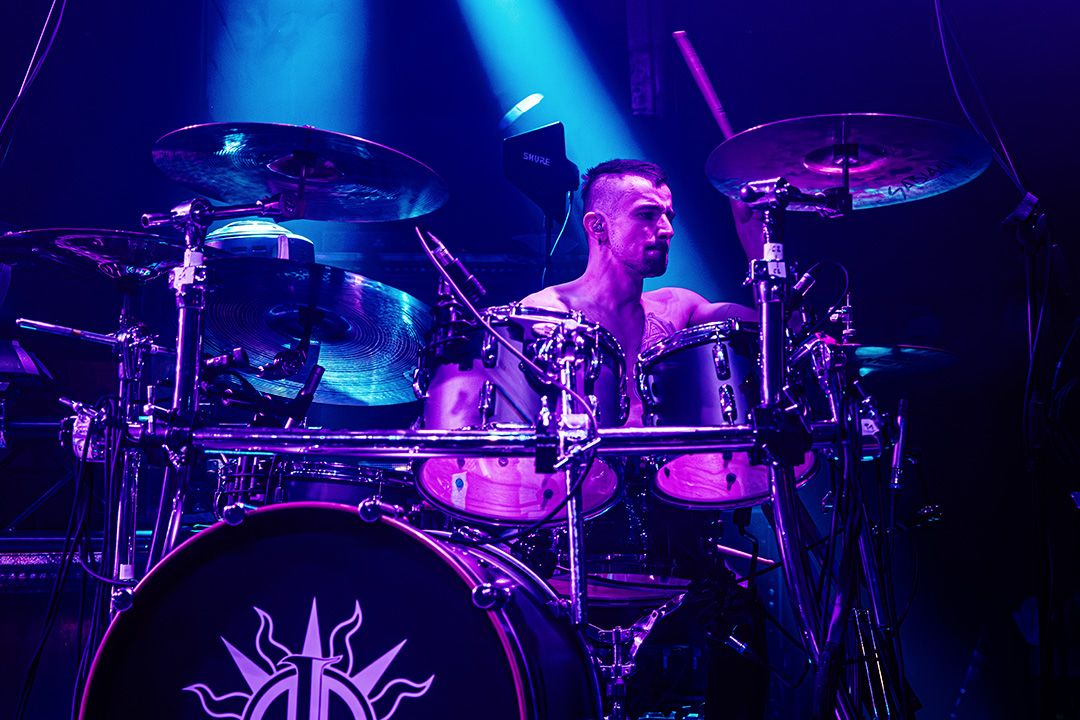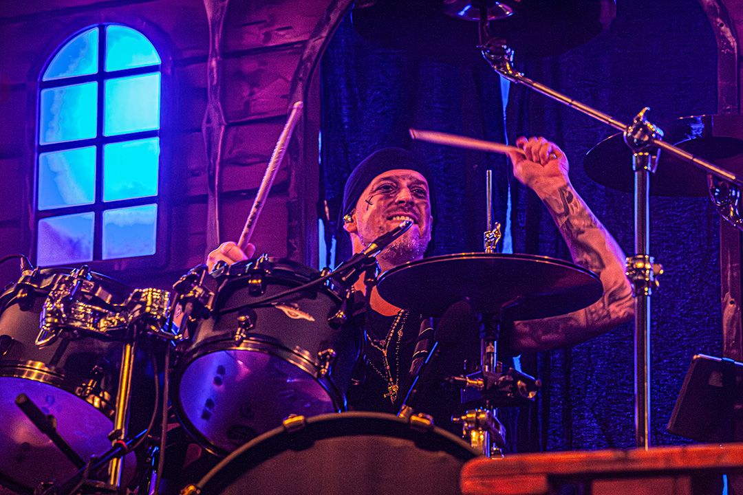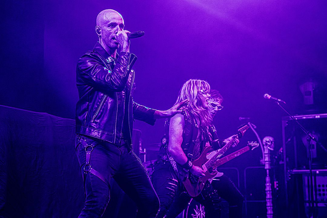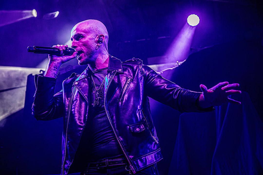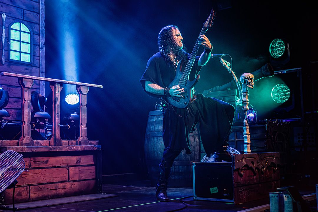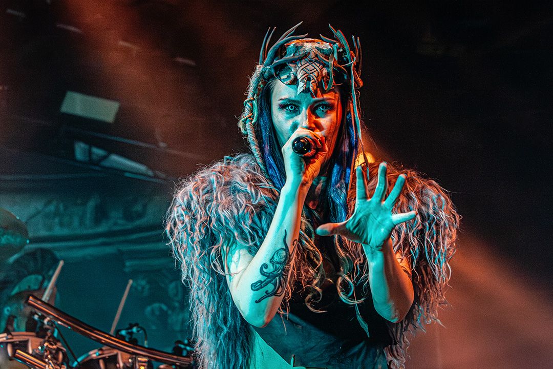 Beim Umbau dann wird schnell klar, dass Visions Of Atlantis großen Wert auf Atmosphäre legen. Die Bühne wirkt nach kurzer Zeit wie das Deck eines Schiffes kurz vor dem Auslaufen. Dieses Bild greift das Piratenkonzept der Band konsequent auf und Visions Of Atlantis übernehmen das Ruder während das Lichtdesign die Szenerie in wechselnde Blau- und Grüntöne hüllt. Fast so, als würde sich die Halle in eine nächtliche Seelandschaft verwandeln. Dezenter Nebel verstärkt den Eindruck von Gischt und Bewegung. Symphonic Metal trifft auf Piratenromantik, harte Riffs auf große Melodien. Das Zusammenspiel der beiden markanten Stimmen von Clementine Delauney und Michele Guaitoli sorgen für Gänsehaut. Während sich epische Refrains durch die Halle schieben und von der Crowd lautstark zurückgeworfen werden, wie z.B. bei „Legions of the Sea“, „Melancholy Angel“ und spätestens bei den hymnischen Nummern wie „Clocks“ gibt es kein Halten mehr.. Es zünden immer wieder Pyros, die die Bühne in grelles Licht und Hitze tauchen, was die wuchtigen Momente unterstreicht. Außerdem herrscht eine extreme Publikumsnähe. Die Energie schwappt permanent zwischen Bühne und Crowd hin und her. Alle sind lautstark und textsicher dabei. und feiern jede Nuance dieses Sets. Von der Seite des Bühnenrands aus gesehen wirkt das Ganze fast surreal. Während auf der Bühne gesungen, gespielt und gestikuliert wird, antwortet die Crowd wie aus einem Guss.