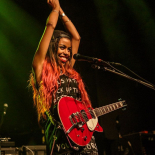Ein äußerst passender Einstieg gelingt den Nova Twins, die alles andere als verträumten Indipop abliefern, wie der Name suggeriert. Nein, zwei unverbrauchte und unverschämt junge weibliche Musikerinnen und ein Drummer machen knarzigen Hiphopsound mit groovigem Shoutout-Rock Rap. Sie verwenden Riffs wie Samples, vor allem Bassistin Georgia South setzt mit viel Effekt höllisch groovige Space-Sounds in die Welt, die von Sängerin und Gitarristin Amy Love zu messerscharfen Rap n Rock Nummern verwandelt werden, wie die neueste Single „Devils Face“ zeigt. Von Rock- bis Ambient, Fusion- bis Punk-Funk Sounds, alles zaubert sie mit ihren 4 Saiten und ihrem Wah Pedal.