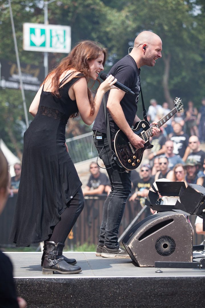Den zweiten – sonnigen aber nicht ganz so heißen – Festivaltag startete eine der Entdeckungen des vergangenen Jahres. Die in Mannheim gegründete „Female Fronted Metal“-Band Beyond The Black durfte aufgrund einer Absage länger spielen, was für reichlich Begeisterung unter den Anwesenden sorgte.