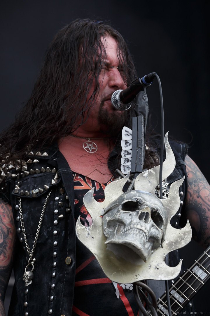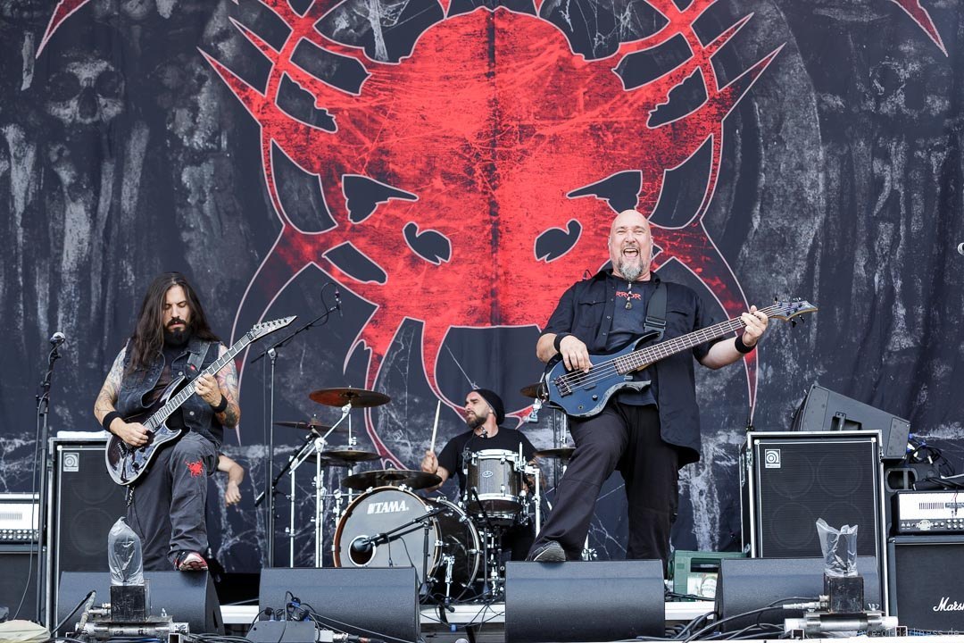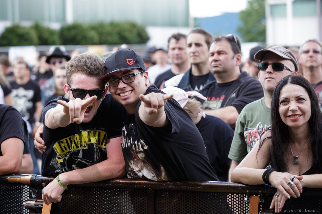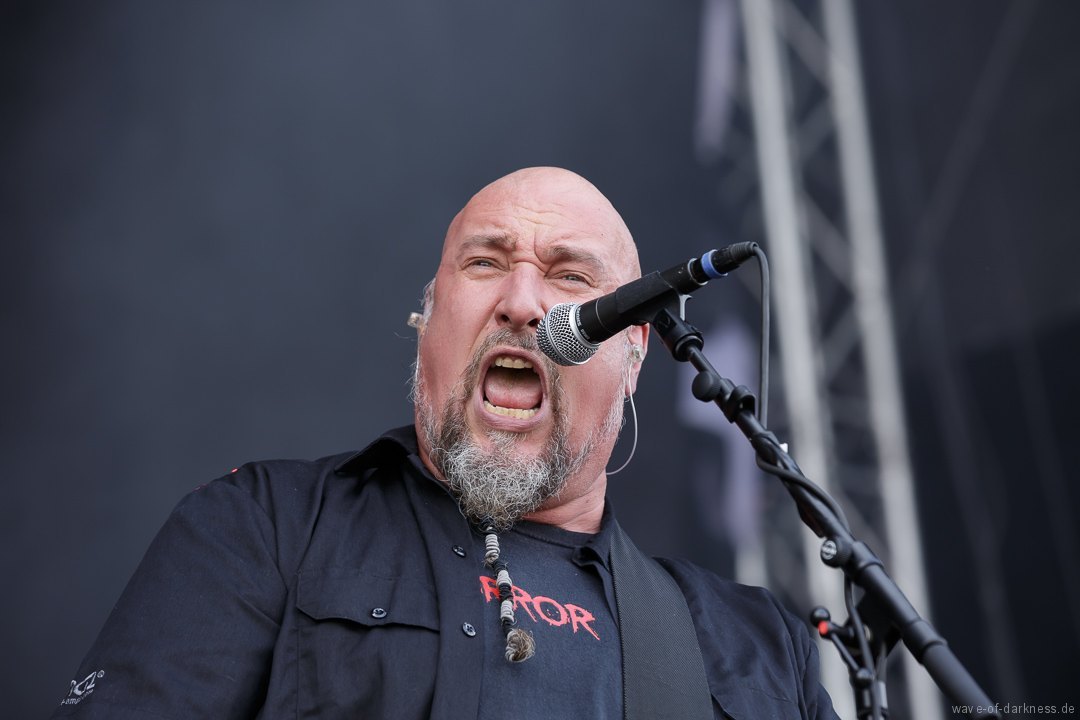 Nachdem sich um 12 Uhr die Tore geöffnete hatten, strömten die ersten Besucher voller Spannung auf das, was sie erwartet, auf das Messegelände. Denn um 13 Uhr sollte das erste Saarmageddon mit Valient Thorr starten. Da jedoch die US-amerikanische Band nicht rechtzeitig antreten konnte, gaben schließlich die schwedischen Hardrocker von Bullet den Startschuss. Im Anschluss folgte mit Rage schon das erst Highlight des Tages. Das nordrhein-westfälische Trio um das einzig verbleibende Gründungsmitglied Peter Wagner sorgte direkt für ordentliche Stimmung vor der hohen Bühne. Leider musste die Power-Metal-Band, die recht früh im Line-Up platziert war und man somit mit einer kurzen Spielzeit rechnen musste, nach etwa 30 Minuten die Bühne verlassen. Sowohl die Band als auch die Fans hätten gerne noch ein paar weitere Lieder zusammen gespielt bzw. gehört, was an dem Tag aufgrund des „sehr eng gesteckten Zeitplans“ (so der Veranstalter) kein Einzelfall blieb. Mit 20 Minuten Verspätung legten Armored Saint los. Aber irgendwie wollte der Funke nicht recht überspringen oder es lag einfach daran, dass Rage die Latte schon ziemlich hoch gelegt hatte. Denn die Metal-Band aus Pasadena lieferte eine Energie geladene Show ab, bei der vor allem der ausdrucksstarke und unermüdlich herumspringende Frontmann John Bush unentwegt das Publikum anzuheizen versuchte. Nach kurzem Umbau folgte nun eine der ältesten bis heute bestehenden deutschen Thrash-Metal-Bands. Obwohl die Sound-Abmischung nicht ganz so kräftig klang, versetzte Destruction nicht nur die große angereiste Fanbase in Bewegung. Jetzt flogen die Haare in den ersten Reihen oder man schwitzte in den Mosh- und Circlepit auf dem steinigen Untergrund.