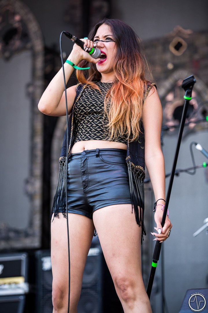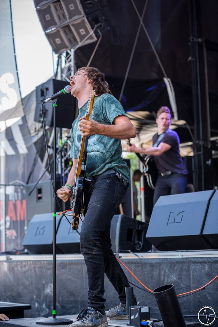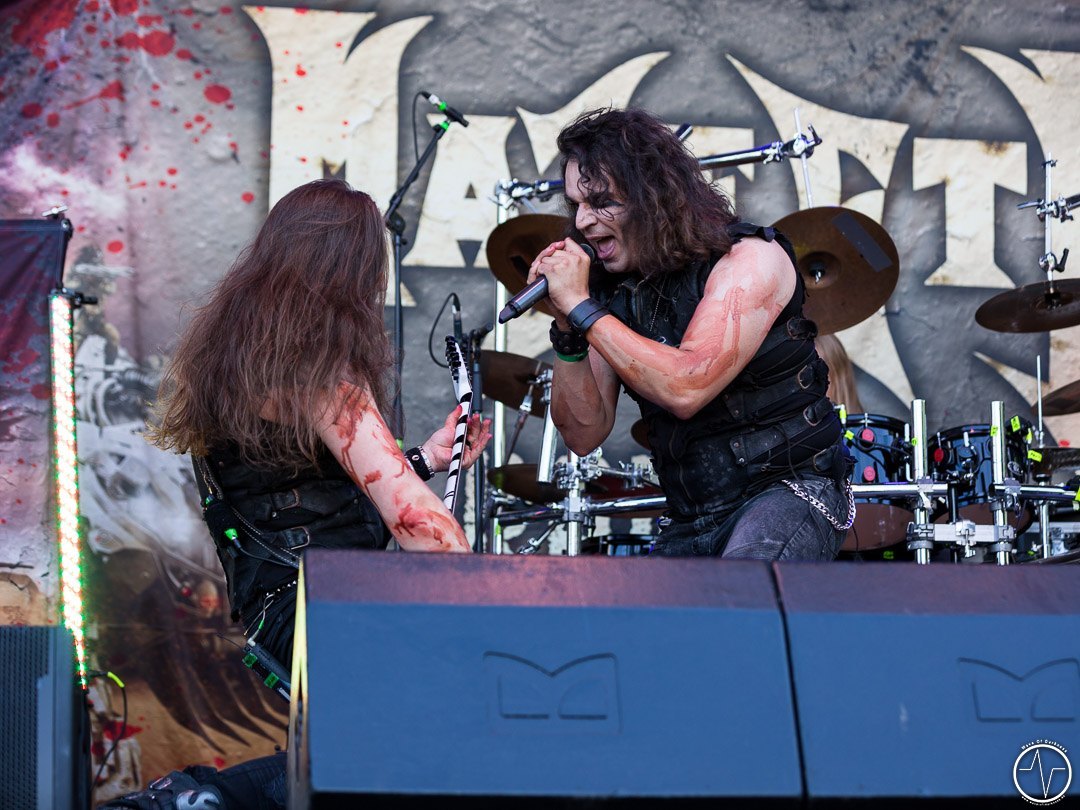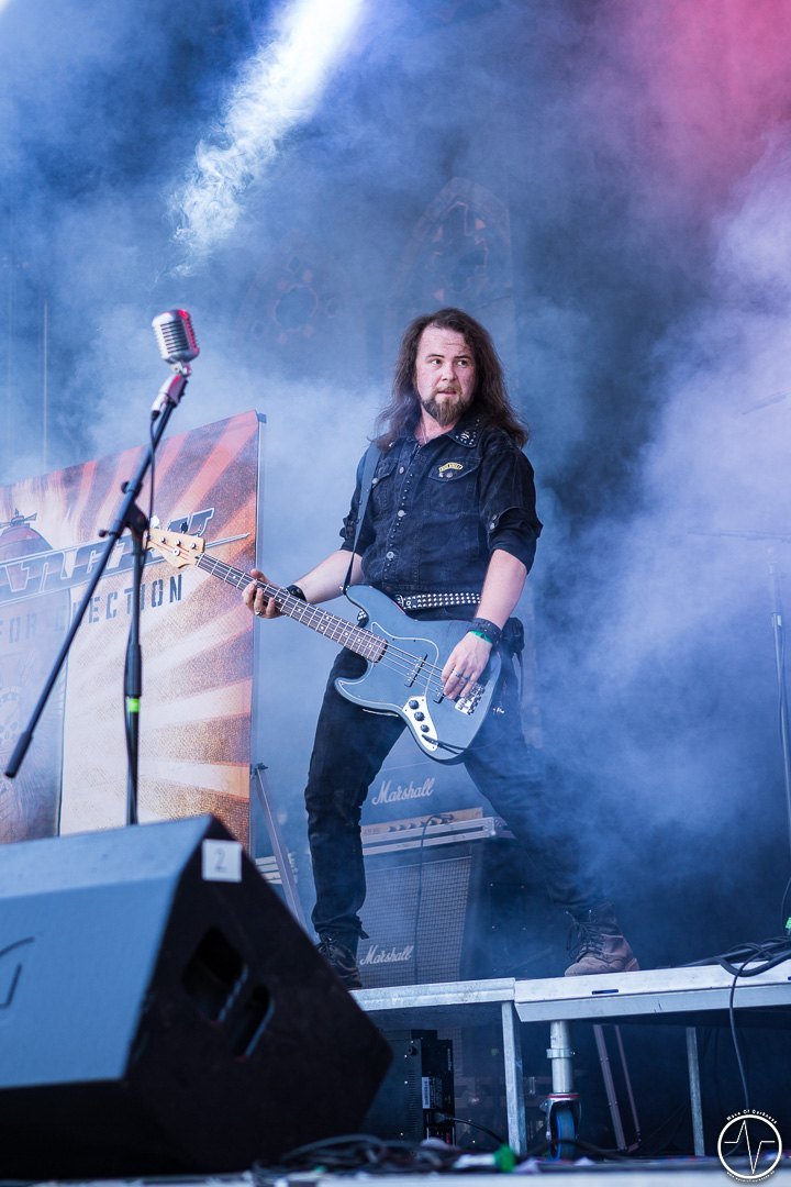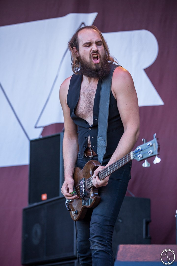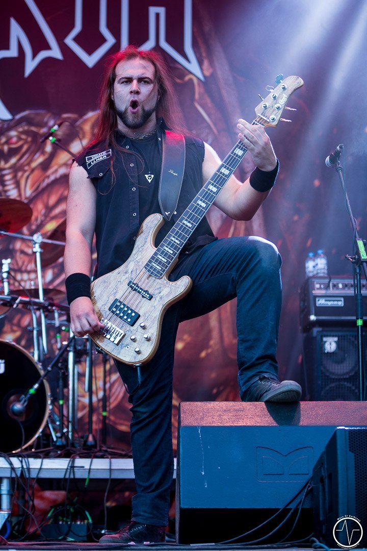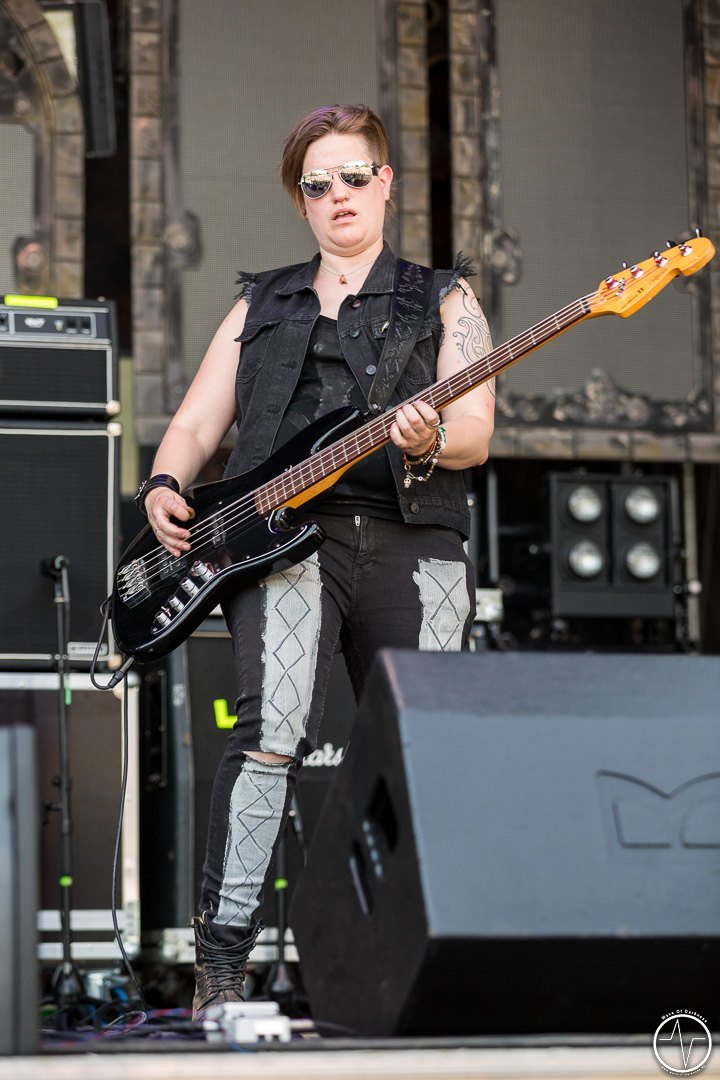 Mit 35 Minuten Verspätung eröffnete AC Angry, die einzige saarländische Band an diesem sonnig-heißen Festivaltag, die zweite Ausgabe des Saarmageddons. Im guten alten Hardrock-Stil machten die vier Jungs ordentlich Druck, was so manchen direkt auf die Beine brachte. So waren mit dem ersten Ton die früh angereisten Festivalbesucher trotz sengender Hitze voll dabei. Heiß ging es auch bei Tundermother weiter. Denn die vier jungen Damen aus Schweden schlossen nahtlos an den Vorgängern an, nämlich mit kräftig-melodischem Hardrock, der mitreißt. Besonders eindrucksvoll war die raue aber kraftvolle Stimme der stets umher wirbelnden und Bier trinkenden Sängerin. Währenddessen spielte die Gitarristin ihr Solo vor der Bühne inmitten der jubelnden Headbangerschar, von wo die Mädels später auch für Bilder und Autogramme bereit standen. Steak Number Eight zeigte sich eher von der psychedelischen Seite. Insbesondere der Sänger präsentierte sich etwas verstörend auf der Bühne, nicht zuletzt als er sich beim Schreien das Mikrofon bis in den Rachen steckte. Ansonsten ging es bei der Band aus Belgien auf der Bühne gut ab, wogegen sich das Publikum nun etwas ruhiger verhielt.