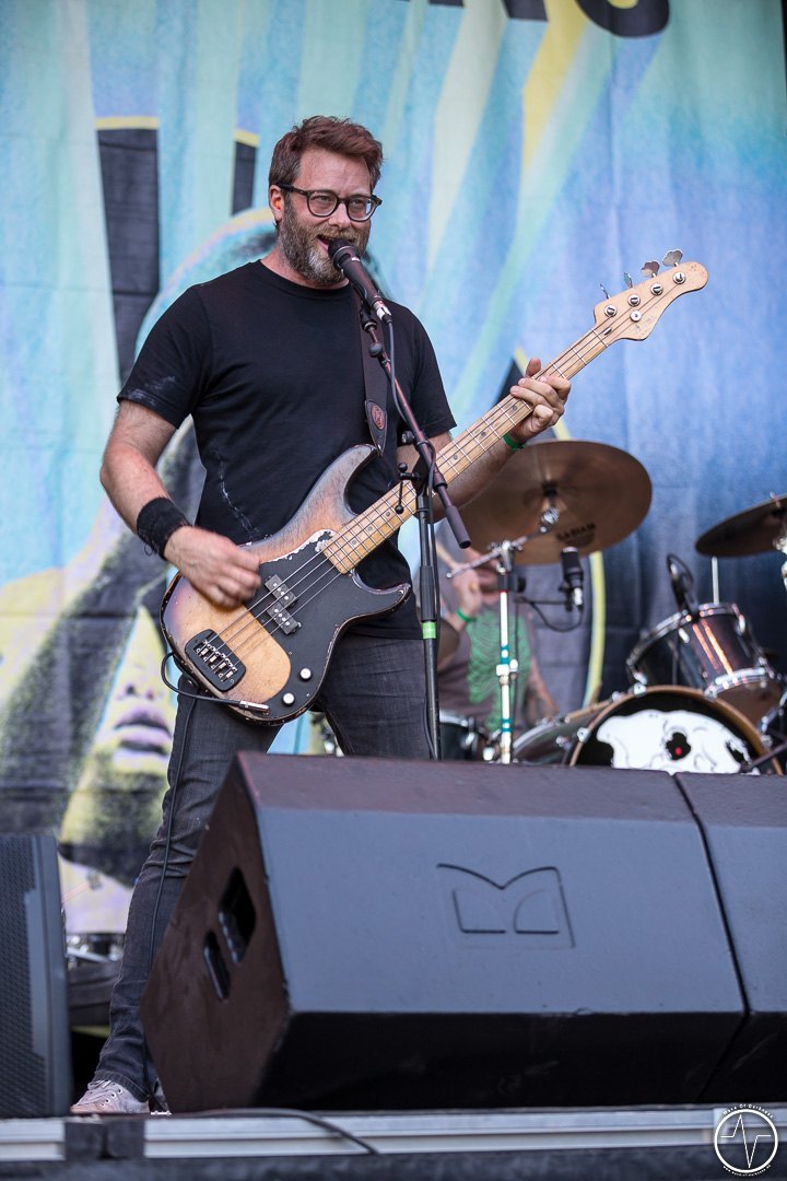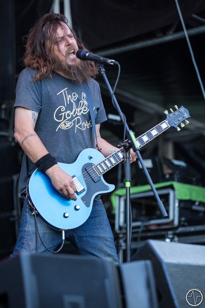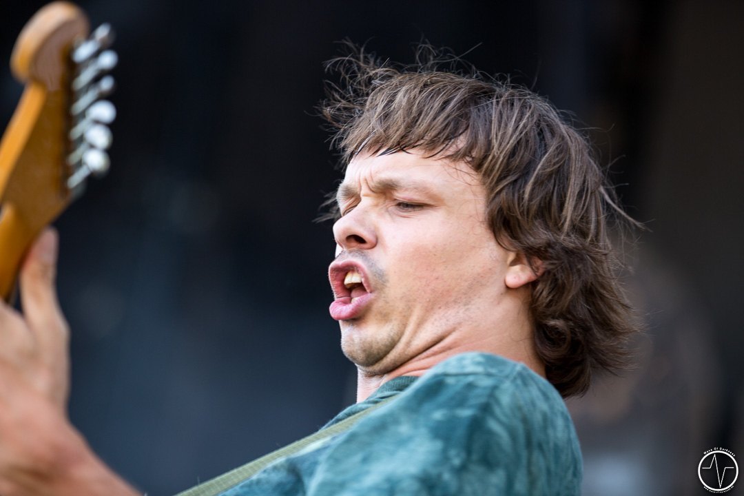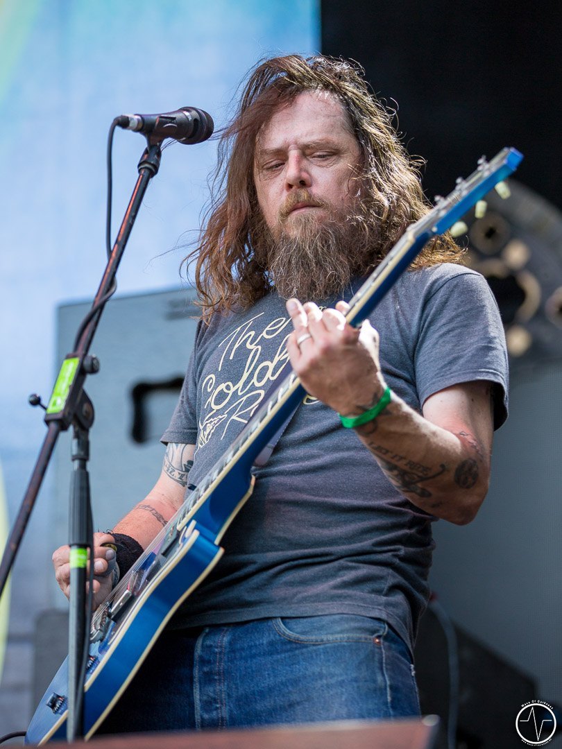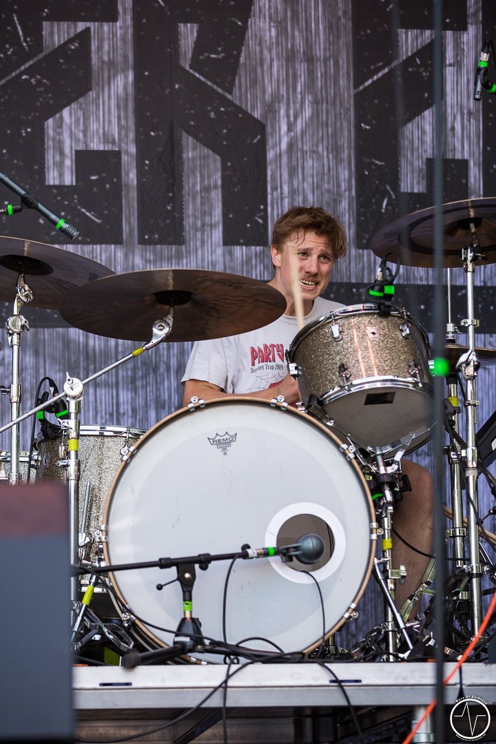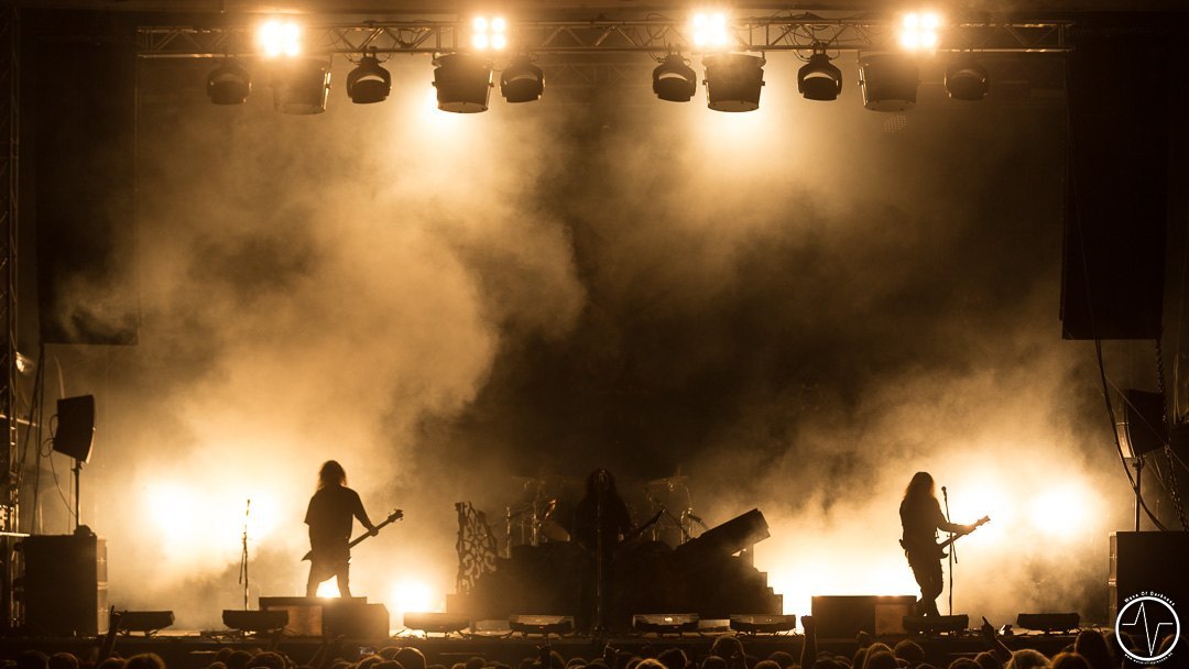 Das änderte sich bei Majesty. Inzwischen trafen immer mehr Leute auf der Festwiese am Schwimmbad ein, um ihre Bands zu sehen und mit Freunden bei lauter Musik zu feiern. Aber auch die Band um Tarek „MS“ Maghary trieb das Stimmungsbarometer in die Höhe. Erfreulich für diejenigen, die sich beeilt hatten. Denn bis dahin hatte sich das Programm um 60 Minuten nach hinten geschoben, so dass jetzt auch die Neuankömmlinge, die „YOLO Heavy Metal“-Party von Majesty mitfeiern durften. Doch die Laune von so manchem sank danach kurz in den Keller als in der ausgiebigen Umbauphase verkündet wurde, dass Entombed A.D. aus „produktionstechnischen Gründen“ nicht anreisen könnten. Das Gute daran war, dass man nun wieder im Zeitplan war und so Kadavar pünktlich loslegen konnten. Eigentlich zunächst nur mit dem Soundcheck, der jedoch schon die ersten Fans begeisterte. Denn als die drei Berliner wieder Backstage verschwanden, erschallten „Zugabe, Zugabe“-Rufe. Kurz drauf meldete sich die Band mit „Habt ihr noch Bock?“ zum eigentlich Gig zurück. Kadavar überzeugte nicht nur mit ihrem groovigen Rock sondern auch mit authentischer Inszenierung. Es war allein schon sehenswert, wenn der lange, dünne Drummer hinter seinem zu klein wirkenden Schlagzeug saß und wie wild um sich schlagend auf sein Instrument drosch. In immer noch praller Sonne war jetzt wieder gute Laune angesagt.