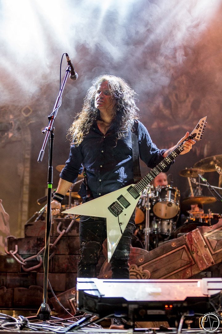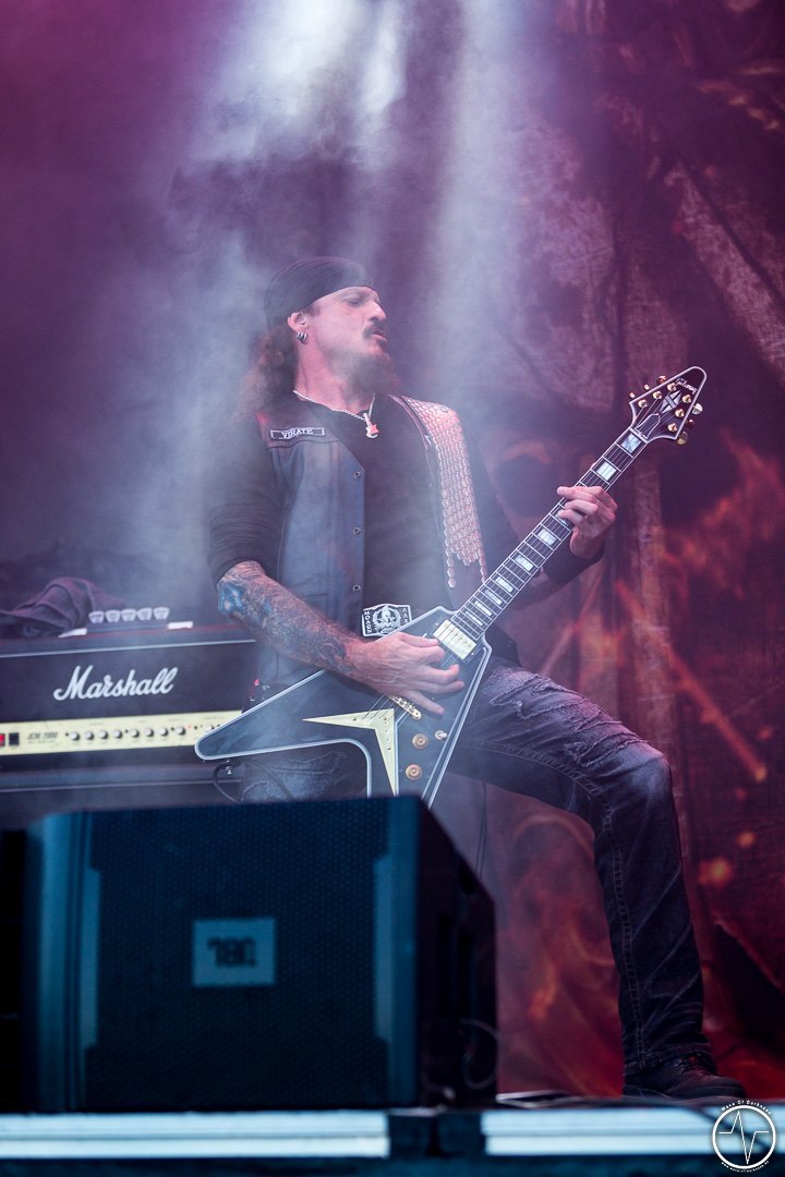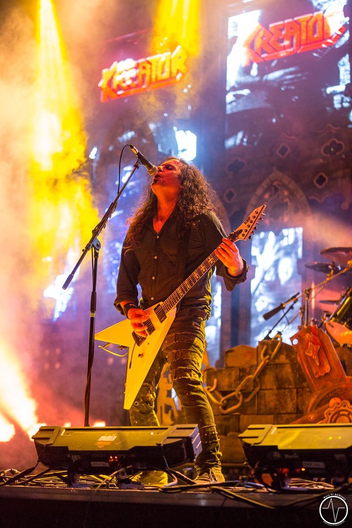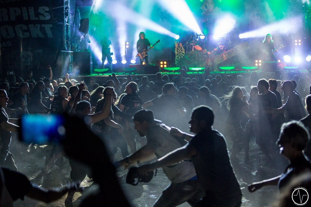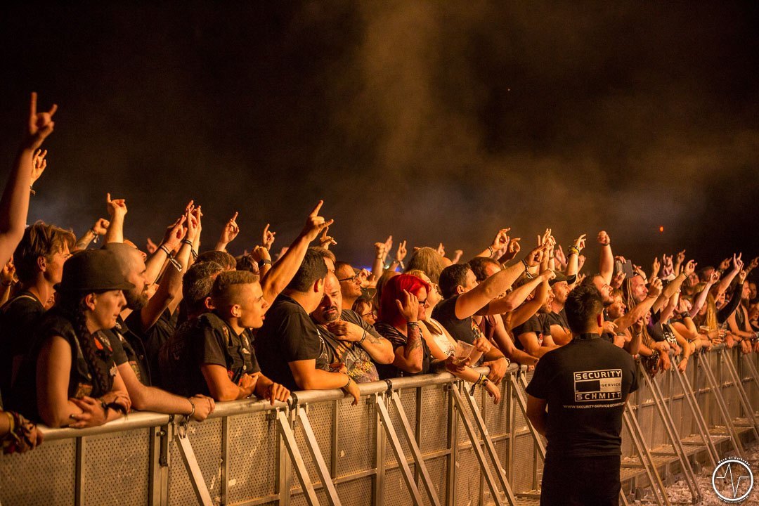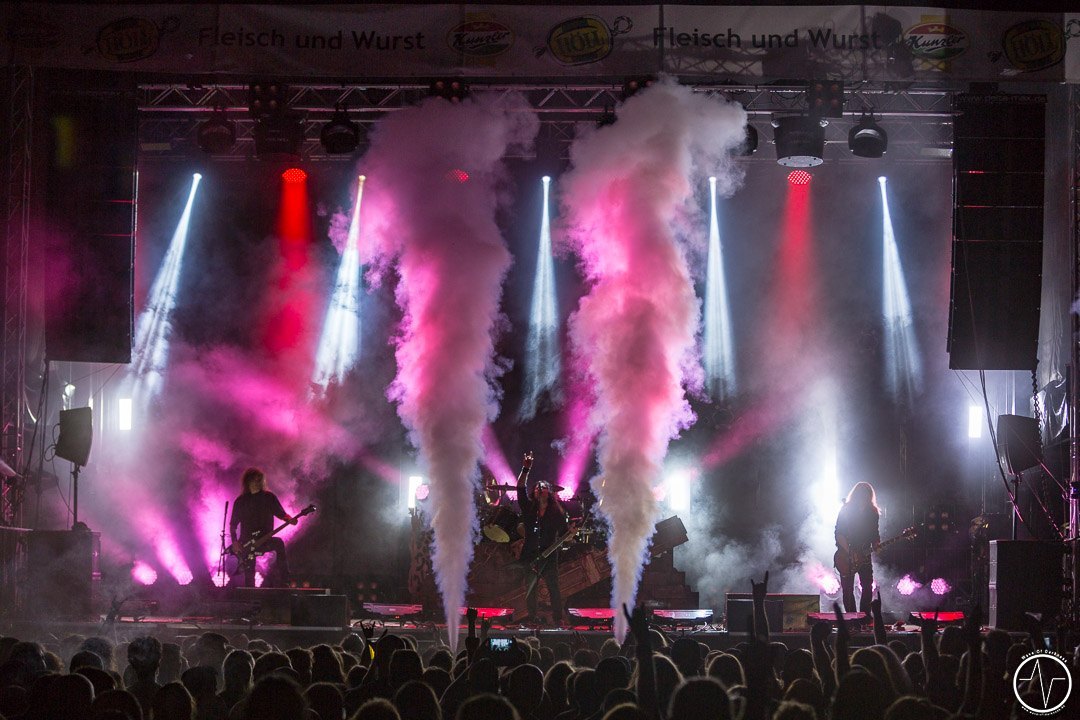Im Laufe der Spielzeit von Red Fang senkte sich die Sonne und angenehmer Schatten machte sich auf dem Festivalgelände breit. Zu dem hämmernden Bass tanzten … ähm headbangten immer mehr Fans. Die Band versprühte tolle Spiellaune, das Bier floss Genre typisch in Massen – präventive Routinehandlung vor Dehydrierung versteht sich. Dieser Auffassung war ebenso der Frontmann der Band Iced Earth, die im Anschluss die Festivallaune nochmals ein Level nach oben hievten. Der mittlerweile gefüllte Platz bebte zu den harten Riffs. In der Mitte bildete sich ein gewaltiger Moshpit, welcher bis zum Ende nicht mehr still stand. Iced Earth präsentierten sich mit einer Setlist aus ihren Hits sowie Liedern aus dem brandneuen Album in hervorragender Laune und die zahlreich vorhandenen Fans feierten sie dafür. Für den glorreichen Abriss sorgten schlussendlich Kreator. Eine ausgeprägte Feuer-, CO2- und Luftschlangenshow gepaart mit den hammerharten Klängen riefen die letzten Reserven der Festivalbesucher hervor. „Macht das Festival perfekt. Teilt euch in der Mitte bis nach ganz hinten. Und ihr wisst, was dann kommt“ war die Ansage für die riesige „Wall of Death“. Crowdsufer, Headbanger und mitsingende Fans sah man bis in die frühe Nacht hinein. Etwa um 23.30 Uhr war dann Schluss und zufrieden gingen die Besucher nach Hause, voller Vorfreude auf das Saarmageddon Open Air 2018.