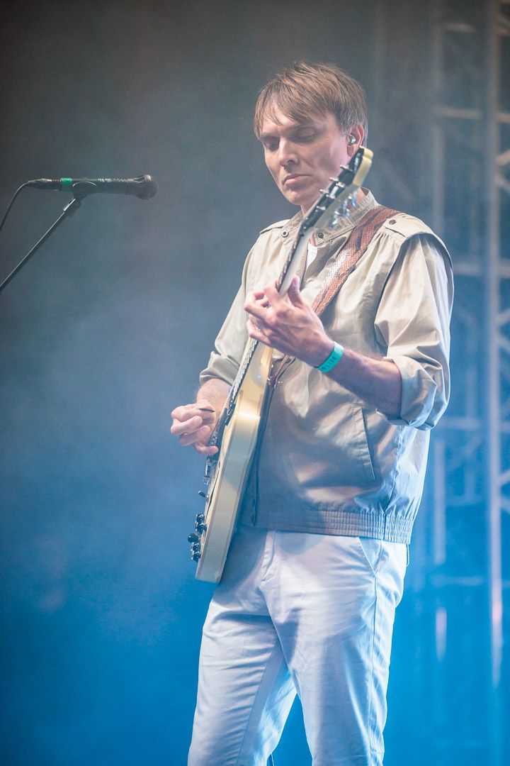 Nach 18 Jahren war es dann wieder soweit. The Cardigans betraten unter mächtig Beifall endlich wieder hierzulande eine Bühne und nahmen das Publikum mit dem ersten Akkord zurück in die Jahre ihrer Blüte. Zum Opener „Losing A Friend“ bezog anmutig im grünen Anzug, mit übergroßer Schleife und ohne große Gestik Nina Persson hinter ihrem Mikrofon Position. Da war sie, die zarte, gefühlvolle Stimme, die spätestens zum dritten Song „Erase/Rewind“ jeden in ihren Bann gezogen hatte. Bis auf Gitarrist Peter Svensson, der von Oskar Humlebo ersetzt wurde, spielten The Cardigans in Originalbesetzung. Während Humlebo eher stoisch auf der Bühne stand, spielte Bassist Magnus Sveningsson mit ansteckender Freude. Immer wieder nahm er Kontakt zu den Fans auf und warf ein herzliches Lächeln zurück. Im Hintergrund saßen Bengt Lagerberg am Schlagzeug, das kaum von den Scheinwerfern erfasst wurde, sowie Keyboarder Lars-Olaf Johansson, der mit seiner legeren Baseballjacke samt Basecap aus dem feinen Dresscode der restlichen Bandmitglieder herausstach. Das Rampenlicht gehörte aber überwiegend der ausdrucksstarken Sängerin, die nur für die gelegentlichen instrumentalen Soli den Fokus verließ. Es ist fasszierend, welche Klarheit ihre Stimme immer noch hat, mit der sie durch die bunt gemischte Setlist führte. „Carnival“, „For What It’s Worth“ oder „Hanging Around“ deckten exemplarisch einige Sternstunden der bisherigen Bandgeschichte ab. Im Publikum schien man die Welt außerhalb des Zeltes zu vergessen. Glücklich sowie textsicher sangen viele mit oder tanzten auch auf dem kleinesten Platz. Doch mit den ersten Tönen von „Lovefool“ sprang das Stimmungsbarometer in eine andere Sphäre, was bis zum finalen Hit „My Favorite Game“ auch nicht mehr abebbte.