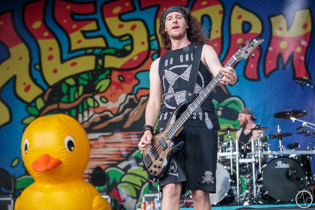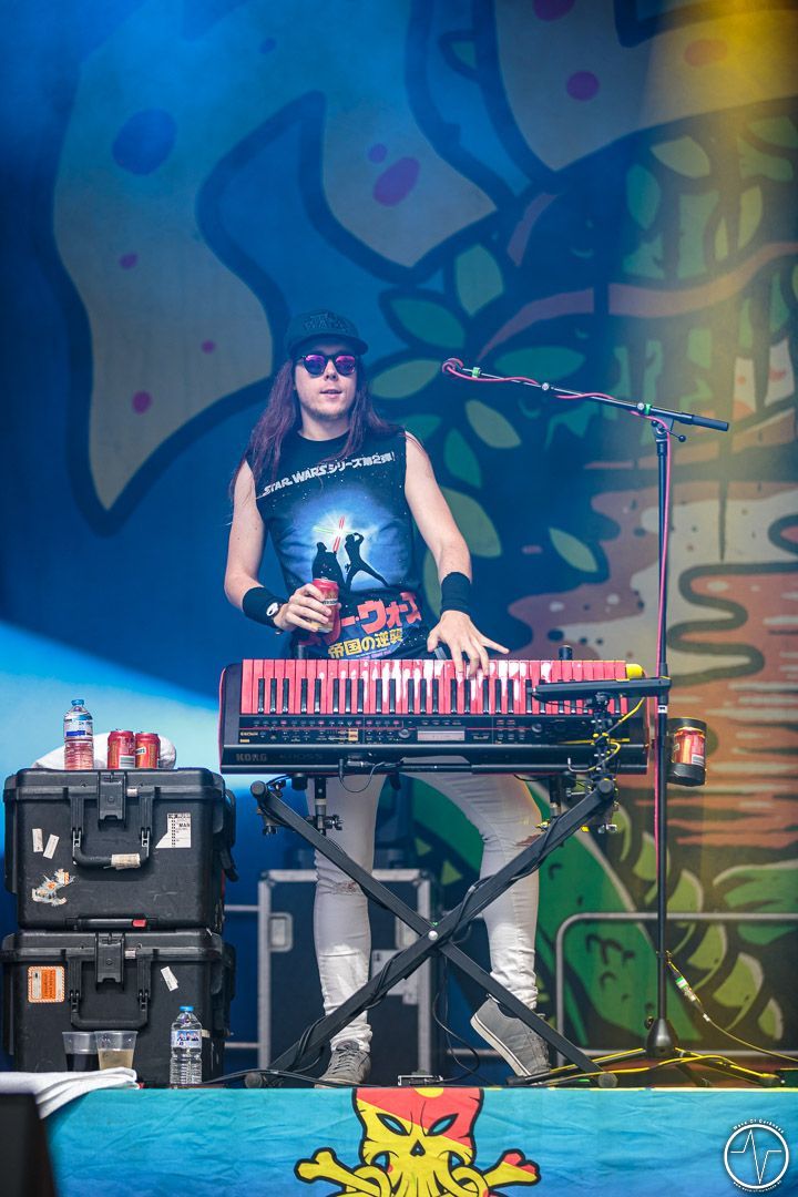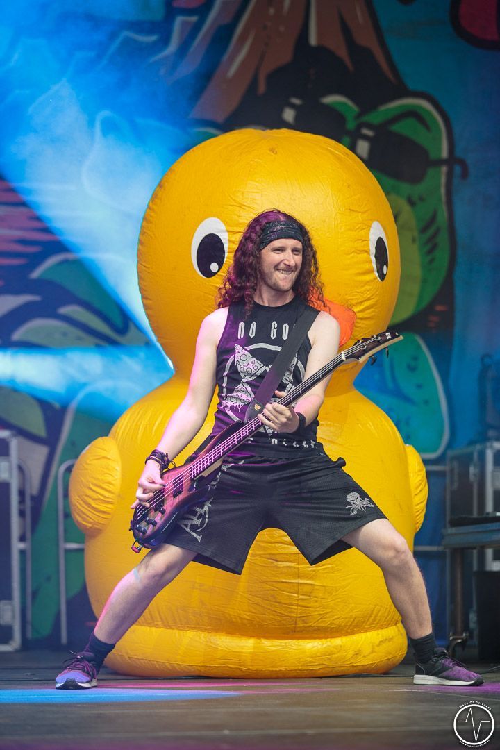 Alestorm machen im Anschluss ohne Umschweife ihrem Namen alle Ehre. Ein überlebensgroßes Quietscheentchen, ein chillendes Krokodil auf dem Banner und jede Menge Instrumente, welche direkt aus Bikini Bottom stammen könnten, bilden den Grundstock der Truppe. Die Qualitäten dieser Truppe sind wie viele Puzzleteile, die ein simples aber gut abgestimmtes Gesamtbild erzeugen: Der Waynes-World-meets-Weird-Al Yankowic-Sänger, der folkige, aber bisweilen brachiale „True Scottish Pirate Metal“, die schunkeligen Keyboardsounds, die spontan-einstudierten Choreografien und das allgemein von Fans und Band gleichermaßen geliebte Hauptthema „We are here to drink your beer“ sorgen schnell für Partylaune. Geräusche wie auf der Kerwe erfüllen den Vorplatz des Saarbrückener Congresszentrums, als die selbsternannten Piraten die Bühne entern. Der Keyboarder leert zum Einstieg lässig ein Bier, während die bierkutschenschunkelige Spassmetalcombo ihre mitgebrachte Fanbase in Bewegung setzt. Nach dem zweiten Song ist dann plötzlich alles auf null, denn die Technik versagt bzw. bleibt ohne Strom. Das hindert die Fans aber nicht daran die Songs laut weiterzugrölen. Läuft also … drei Minuten später ist die sichtlich erleichterte Band wieder am Netz und ballert den nächsten Song raus.