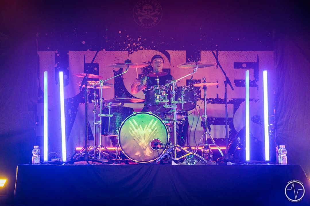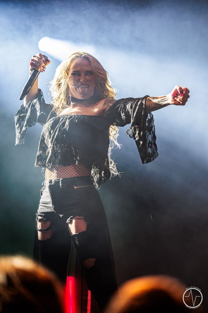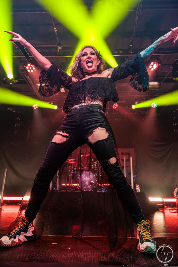 Die Butcher Babies eröffnen mit „Backstreets of Tennessee“ und „Red Thunder“ ohne Anlauf und entfesseln sofort den Pit. „Sincerity“ und „Beaver Cage“ knüpfen nahtlos an diese Energie an. Heidi Shepherd dominiert die Bühne als alleinige Frontfrau und hält die Energie konstant am Anschlag. Unermüdlich sprintet und springt die Sängerin von links nach rechts, immer im direkten Kontakt mit den Fans. Die Alte Feuerwache lässt sich von stampfenden Beats wie bei „It’s Killin’ Time, Baby!“ und „Sleeping With the Enemy“ bereitwillig mitziehen. Während Henry Flury an der Gitarre und Ricky Bonazza am Bass zu den knallharten Songs über die Bühne wirbeln, treibt Devin Nickles die Band hinter den Drums mächtig an. Die Setlist des Abends speist sich primär aus der jüngeren Schaffensphase des Doppelalbums „Eye for an Eye…“ / „…’Til the World’s Blind“ sowie brandneuen Nummern wie „Black Dove“ und „Lost In Your Touch“. Die Metalcore-Formation aus Los Angeles liefert hier absolut professionell ab.