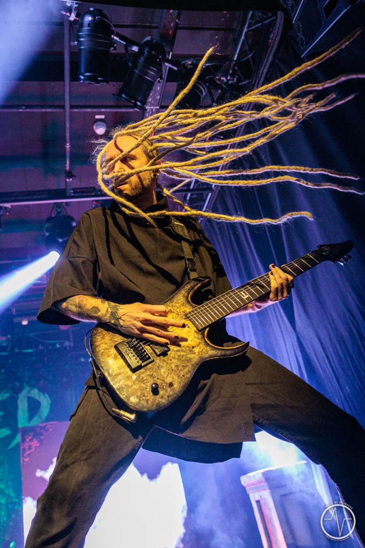 Black Spikes legen mit Vollgas los und hüllen die Halle in einen Sound, der progressive Strukturen geschickt mit elektronischen Schichten und harten Kanten verwebt. Während der Einstieg mit „Hipnozė“ noch fast tastend wirkt und das Mannheimer Publikum zunächst abwartend Distanz hält, gewinnt die litauische Modern-Progressive-Metal-Band aus Vilnius mit neuem Material wie „AUREA“ oder „Jausmus išrašyt“ spürbar an Boden. Passend zur düsteren Modern-Metal-Ästhetik ihrer konsequent schwarzen Outfits arbeitet sich die Band Schritt für Schritt nach vorne. Spätestens bei „Imperatorė“ springt der Funke endgültig über: Die Reihen schließen sich, die Köpfe nicken im Takt und die anfängliche Zurückhaltung weicht kollektiver Bewegung.
