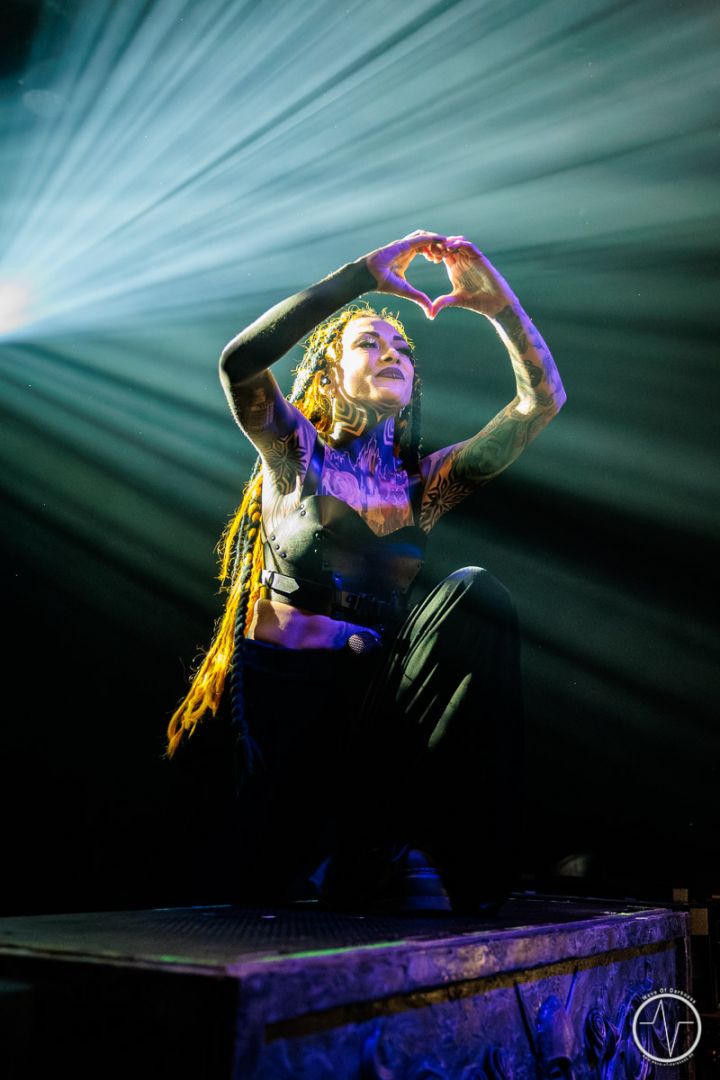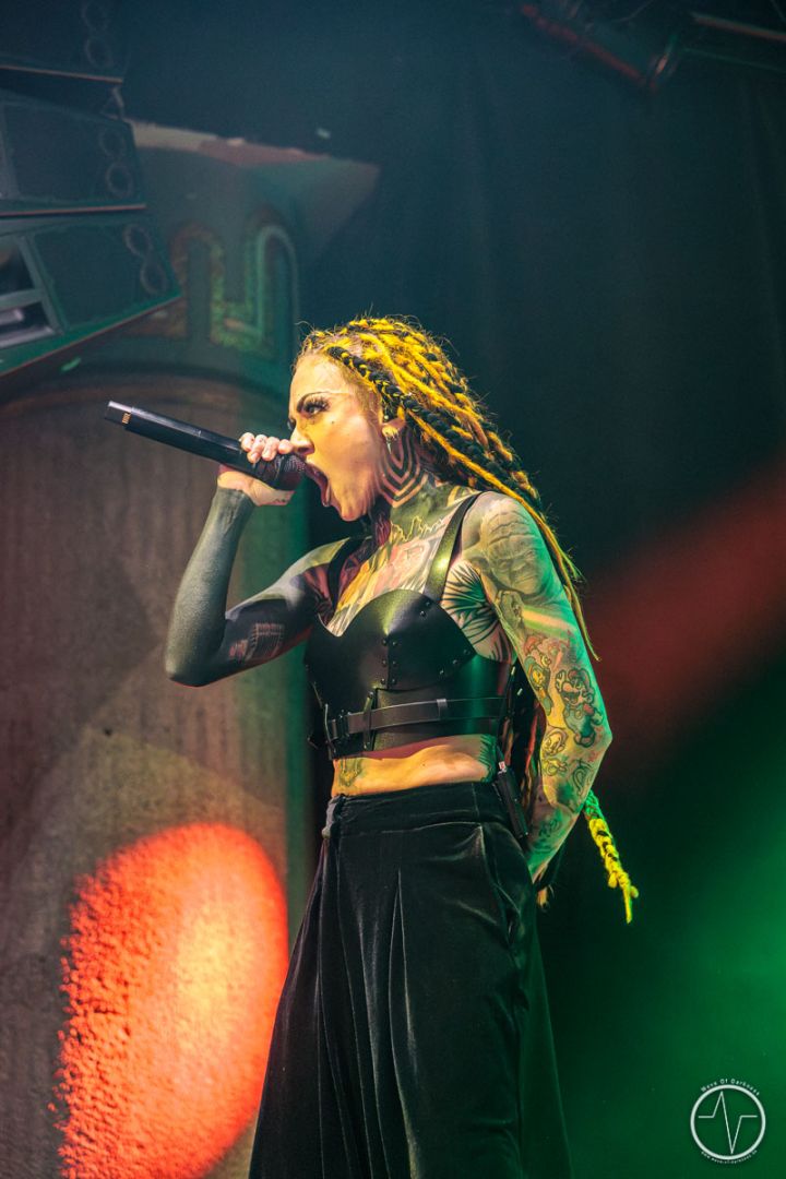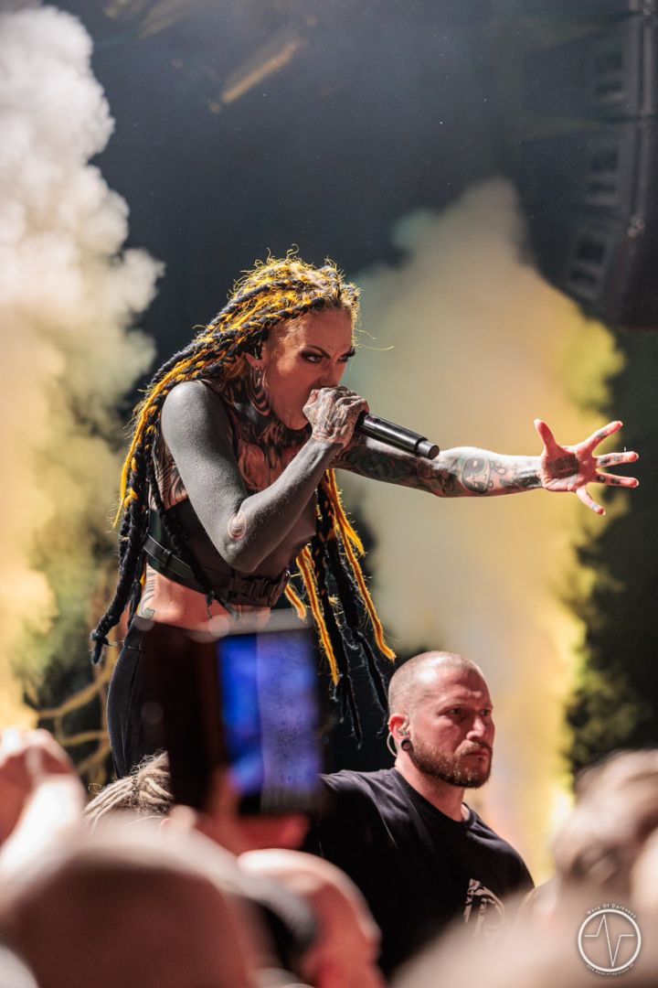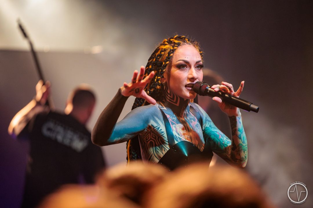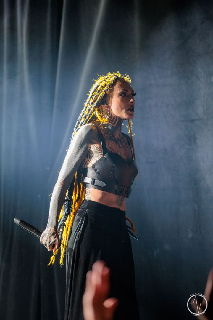Infected Rain fackeln nicht lange: Mit dem Tourtitel „Mutation Phase“ liefern die Moldawier einen programmatischen Einstieg, der die Marschrichtung für den Rest des Abends vorgibt. „The Answer Is You“ und „Dying Light“ halten den Druck auch weiter konstant hoch. Die Nu-Metal-Band glänzt durch eine Mischung aus klarem, melodischem Gesang, aggressivem Shouting sowie intensiven instrumentalen Schichten. Mit den Fan-Hymnen „Fighter“ und „Orphan Soul“ öffnet sich das Set; die Halle wird zum Chor, als die Refrains vielstimmig zurück auf die Bühne schallen. Während „Black Gold“ diese Melodiedichte weiter ausbaut, fungiert „Stranger“ als brutale Erinnerung an die Hardcore-Wurzeln der Band. Beeindruckend ist dabei das visuelle Konzept: Die LED-Flächen sind kein bloßes Beiwerk, sondern unterstreichen die Dynamik der Songs, ohne von der gewaltigen Bühnenpräsenz der Frontfrau Lena Scissorhands abzulenken.