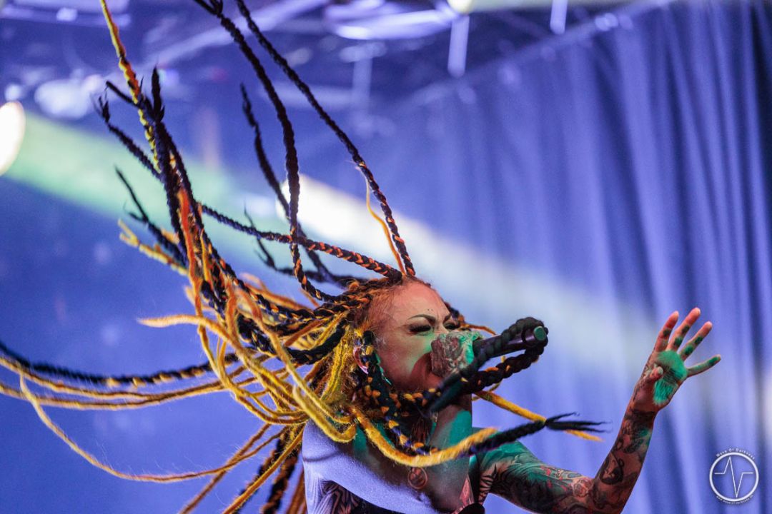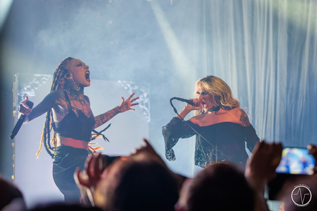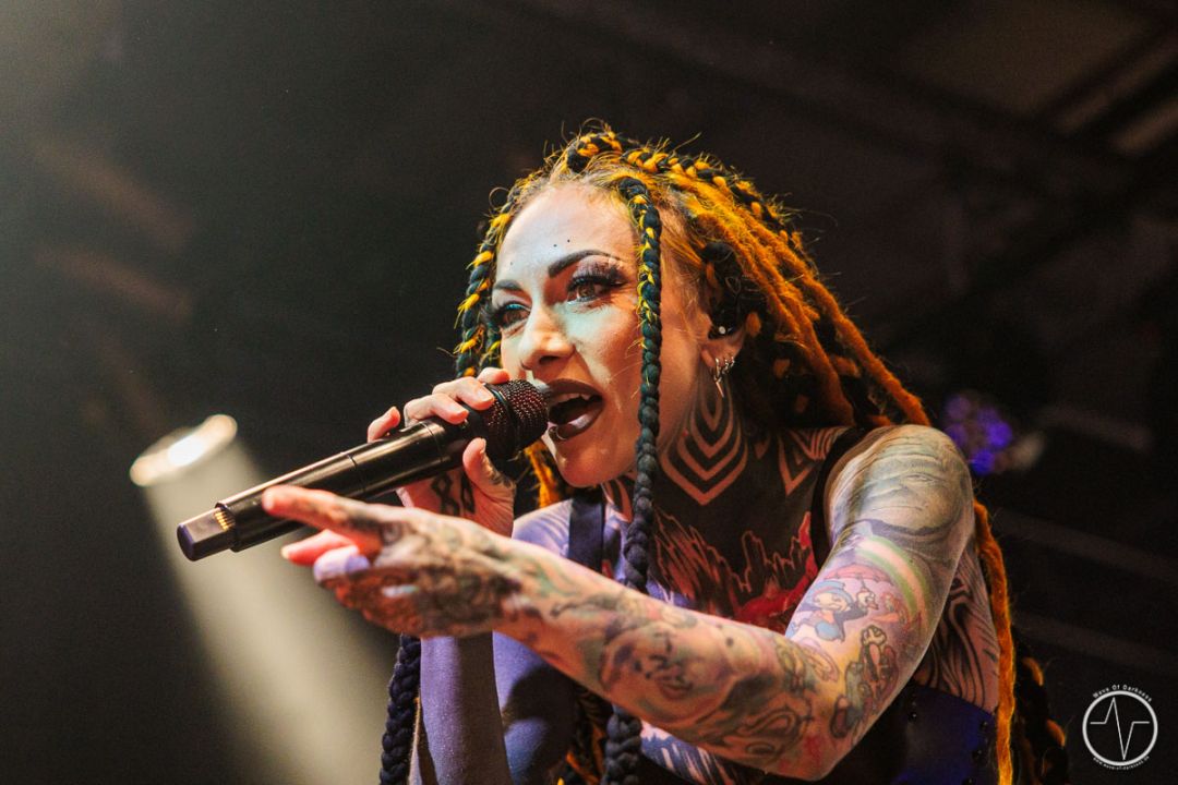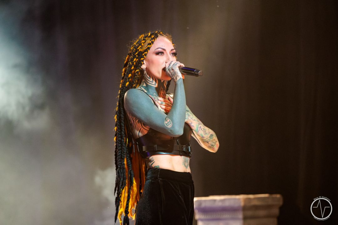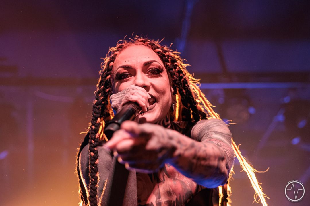 Infected Rain fackeln nicht lange: Mit dem Tourtitel „Mutation Phase“ liefern die Moldawier einen programmatischen Einstieg, der die Marschrichtung für den Rest des Abends vorgibt. „The Answer Is You“ und „Dying Light“ halten den Druck auch weiter konstant hoch. Die Nu-Metal-Band glänzt durch eine Mischung aus klarem, melodischem Gesang, aggressivem Shouting sowie intensiven instrumentalen Schichten. Mit den Fan-Hymnen „Fighter“ und „Orphan Soul“ öffnet sich das Set; die Halle wird zum Chor, als die Refrains vielstimmig zurück auf die Bühne schallen. Während „Black Gold“ diese Melodiedichte weiter ausbaut, fungiert „Stranger“ als brutale Erinnerung an die Hardcore-Wurzeln der Band. Beeindruckend ist dabei das visuelle Konzept: Die LED-Flächen sind kein bloßes Beiwerk, sondern unterstreichen die Dynamik der Songs, ohne von der gewaltigen Bühnenpräsenz der Frontfrau Lena Scissorhands abzulenken.