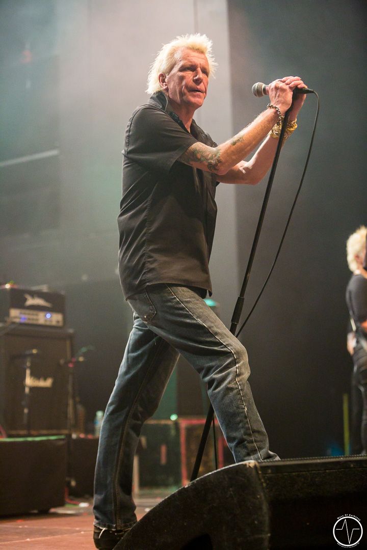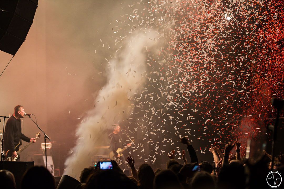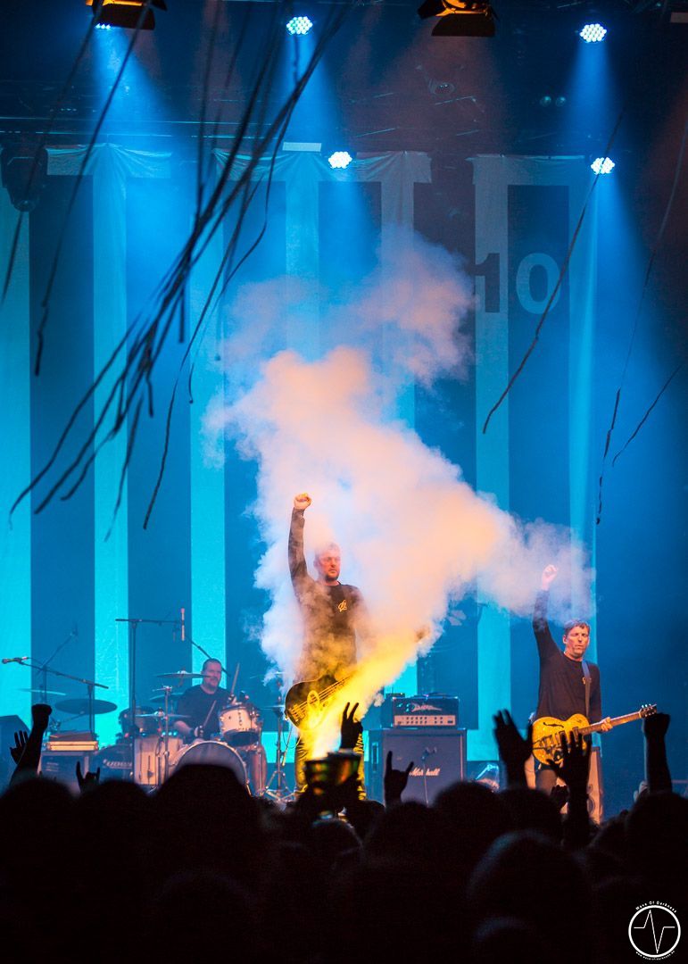 Auf ihrer Tour spielt die Hamburger Band nur drei Konzerte gemeinsam mit den Punkrockern aus Rostock. So ist es nicht verwunderlich, dass die Halle in Wiesbaden schnell und nahezu komplett gefüllt ist. Schon früh strömt das bunt gemischte Publikum aus der Kälte in die geheizten Räumlichkeiten, um sich am Merch-Stand oder den anderen Ständen wir zum Beispiel von Die Partei zu verweilen. Nach etwas Wartezeit beamen dann Dritte Wahl mit „Scotty“ die Menge auf dem Stimmungsbarometer ganz weit nach oben. So dauert es auch nur wenige Sekunden bis der Moshpit seine Fahrt aufnimmt und bist zum Ende nicht mehr ruhig gestanden hat. Gunnar, der Frontmann an der Gitarre, kommentiert im Vorfeld alle Lieder, auf seine unterhaltsame teils ironische Art. Als er sich verspielt, meinte er nur: „Wer eine Karte kauft, wo 3. Wahl drauf steht, darf nachher nicht sagen, das war aber nicht so gut.“ Die vier sichtlich gut gelaunten Herren präsentieren einen bunten Mix aus sowohl alten Klassikern als auch neuen Songs, wie beispielsweise das 21 Jahren alten Lied „So wie ihr seid“, um direkt danach mit „25 Cent“ aus dem neuen Album „10“ weiter zu machen. Die selbst ernannten „Scorpions des Punkrocks“ beweisen unter anderen mit „Sirenen“, dass sie nicht nur eine „Pop-Band geblieben sind“, sondern auch Balladen drauf haben. Einfach herrlich, wenn eine Band so mit sich so im Reinen ist und sich selbst auf die Schippe nehmen kann. „So schnell wie die 30 Jahre spurlos an uns (der Band) vorbei gegangen sind, so schnell ist der Abend auch wieder zu Ende“, beenden Dritte Wahl ihren rundum gelungen Auftritt mit dem Mitsing-Hit „Fliegen“, der lange noch von vielen Fans gesungen wird, selbst als die Band verschwunden ist und die Bühne den Hamburger Punks überlässt. Ach, dann doch noch nicht. Nachdem nämlich die Gesänge nicht aufgehört haben, gibt es zur allgemeinen Begeisterung noch eine deftige Zugabe.