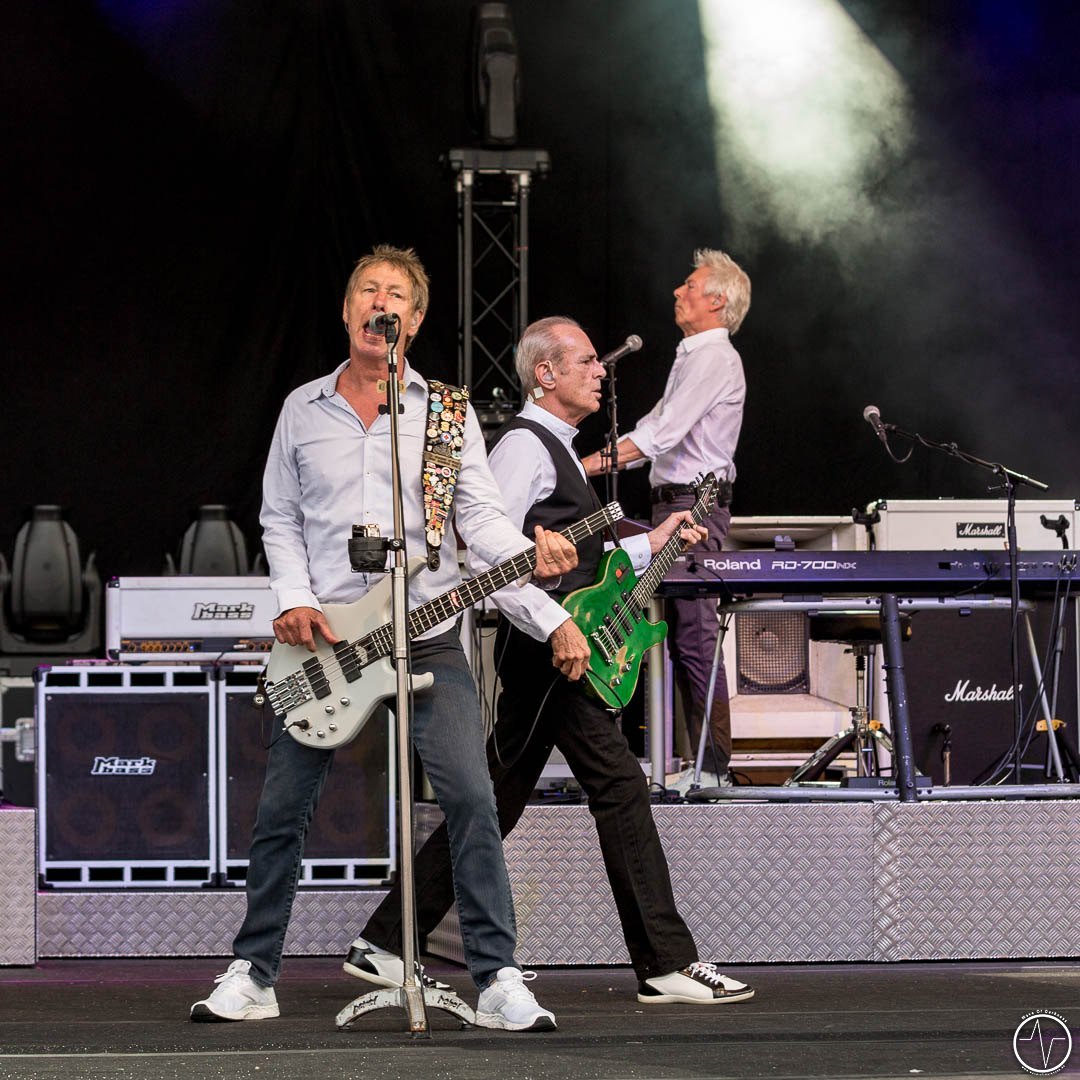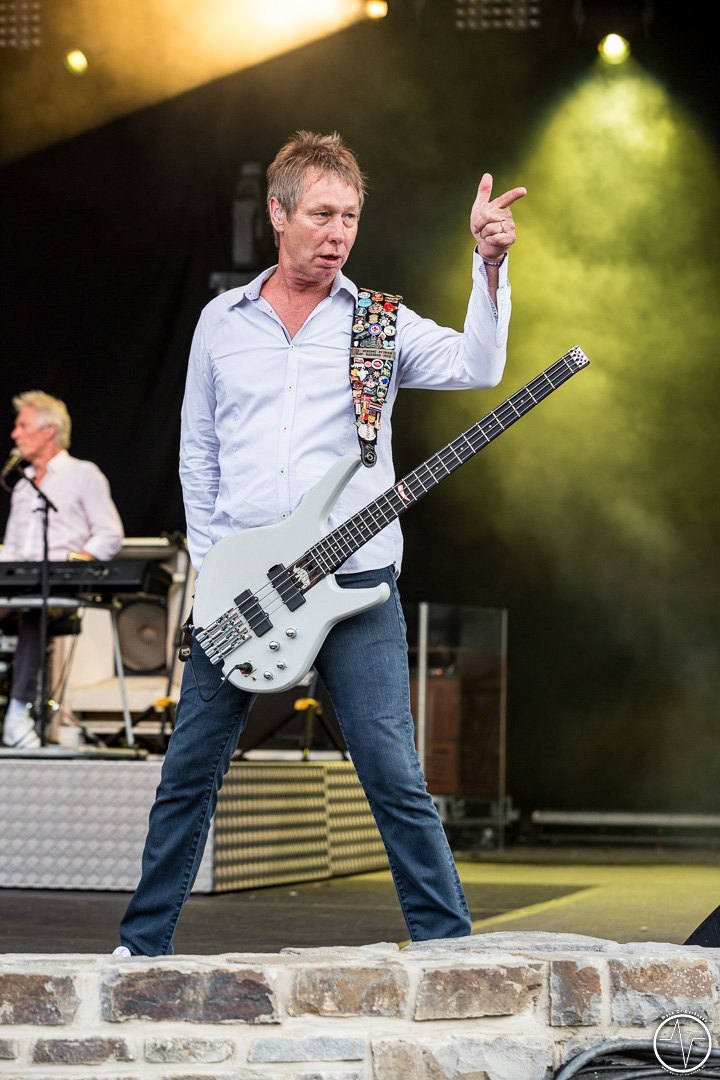 Die lange Schlange am Eingang deutete schon an, dass die Altrocker weiterhin eine große Fanschar anziehen können. Diese ist inzwischen ins gehobene Alter gekommen, wobei sich der ein oder die andere der jüngeren Generation unter die Menge mischte, um die unverminderte Energie mitzuerleben. Selbst die schwül-warme Luft über dem Loreleyfels versprühte die geladene Kraft, die sich in den kommenden Stunden auf der neuen Freilichtbühne musikalisch entladen sollte. Nachdem im Vorfeld die Bluesrock-Band The Red Devils die Menge schon mal anheizte, stürmten anschließend Status Quo mit treibendem Gitarren-Rock die Bühne. Ohne Rick Parfitt, der erst im Dezember 2016 verstarb, spielte Francis Rossi als einzig verbleibendes Gründungsmitglied, wobei man Andrew Brown am Keyboard und John Edwards am Bass auch schon zum Inventar der Band zählen muss. Komplettiert wurde die Gruppe von den Youngstern Leon Cave (Schlagzeug) und Richie Malone (Gitarre). Die britische Band ließ bei ihrem Auftritt keinen Wunsch offen und zeigte sich mit ansteckender Spielfreude. Hits wie „Down, Down“ oder „In The Army Now“ wirkten sich auf so manchen angegrauten Fan wie ein Jungbrunnen aus. Auf den Rängen wurde gesungen, geklatscht und stellenweise das Tanzbein geschwungen. Ja, die drei nahezu 70jährigen Hemdenträger auf der Bühne hatten es noch voll drauf. Voller mitreißender Energie feierten der unermüdliche Rossi und Co. mit der gesamten Freilichtbühne natürlich auch zu „Whatever You Want“ und „Rockin‘ All Over The World“, bevor dann nach der Zugabe unter tosendem Applaus die Bühne wieder freigegeben wurde.