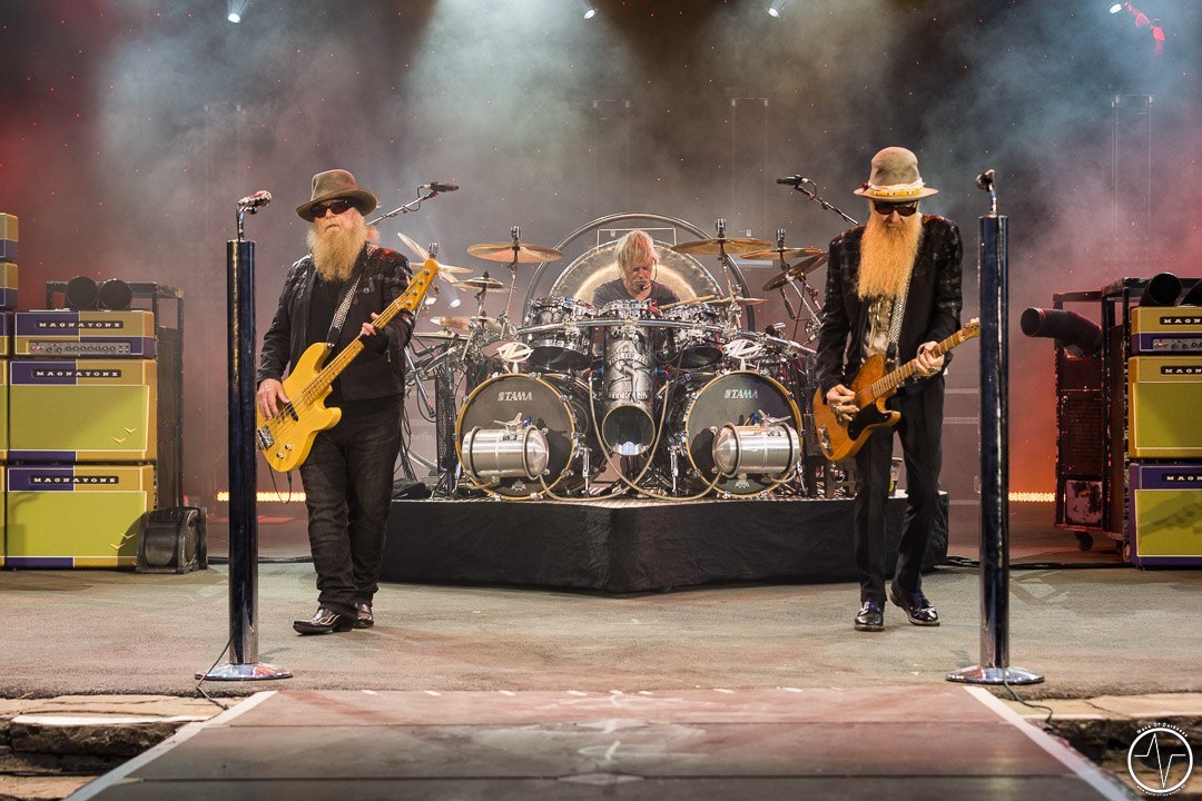 Setlist ZZ Top: Got Me Under Pressure / Waitin‘ for the Bus / Jesus Just Left Chicago / Gimme All Your Lovin‘ / Pincushion / I’m Bad, I’m Nationwide / I Gotsta Get Paid / Foxy Lady / My Head’s in Mississippi / Catfish Blues / 16 Tons / Act Naturally / Cheap Sunglasses / Chartreuse / Sharp Dressed Man / Legs // La Grange (Geplant, aber wegen Unwetter nicht gespielt: Tush / Jailhouse Rock)